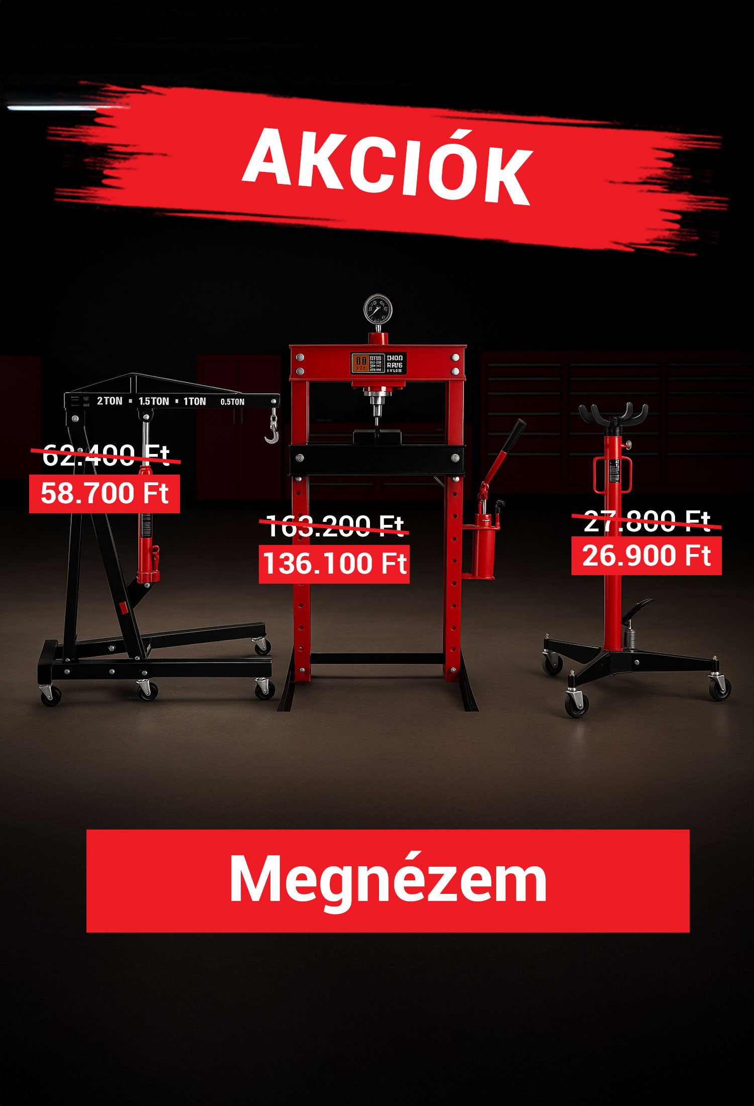 MOTORKIEMELŐ ZSIRÁF 2 T + MOTORTARTÓ ÁLLVÁNY 450 KG + MOTORTARTÓ GERENDA 0,5 T GEBO TOOLS