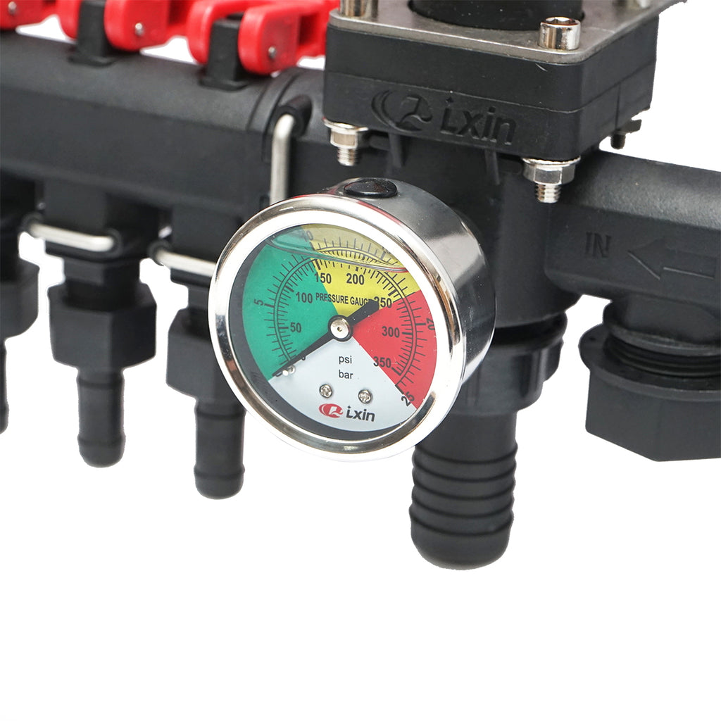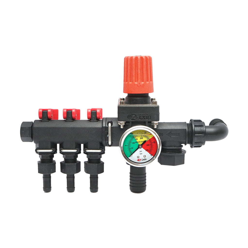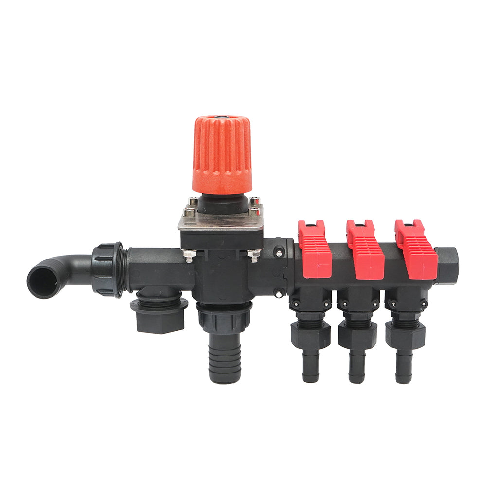 Ez a 3 ágú elosztó glicerinórás nyomásmérővel van felszerelve, amely lehetővé teszi a permetezőgépben a nyomás pontos ellenőrzését és szabályozását. Ideális különféle mezőgazdasági permetezőgépekhez, biztosítva a permetlé egyenletes elosztását három külön irányba.