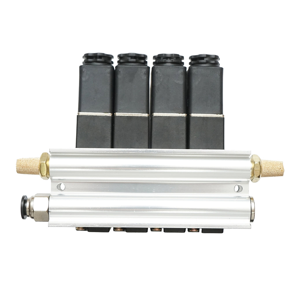 4 DARABOS ELEKTROMÁGNESSZELEP KÉSZLET RÁMPÁVAL, 12V, 2 NYITOTT / 2 ZÁRT, ERDÉSZETI TRAKTORHOZ (DISRA99) 12 voltos működtetésű mágnesszelep-készlet, amely erdészeti traktorokhoz, különösen a DISRA99 típushoz használható. A készlet négy szelepet tartalmaz, ebből kettő alapállapotban nyitott, kettő pedig zárt. A szelepek egy közös szerelőrampára vannak felszerelve.