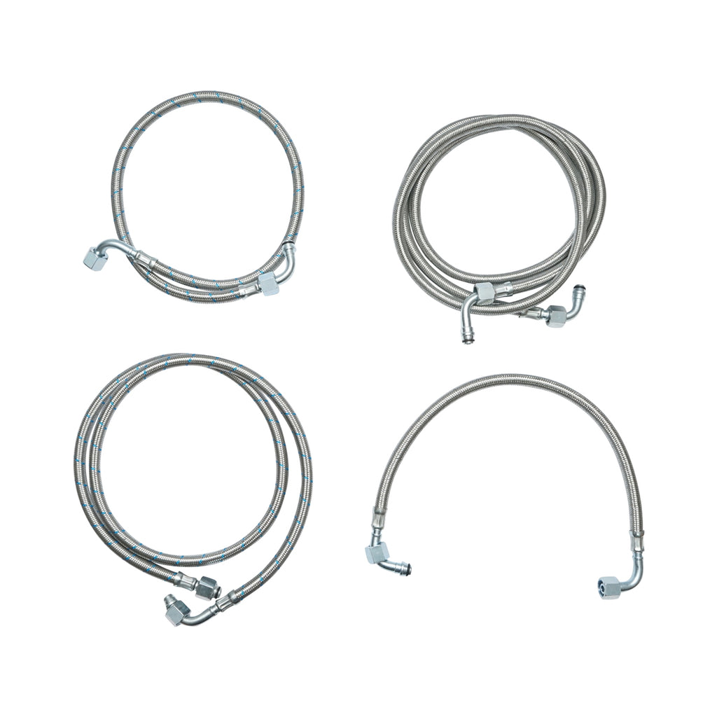 4 DARABOS HIDRAULIKACSŐ KÉSZLET CSÖRLŐHÖZ, ERDÉSZETI TRAKTORHOZ (HOSSZAK: 500 / 800 / 1300 / 1800 MM) hidraulikus készlet, amely erdészeti traktorok csörlőjének működtetésére szolgál. A csomag négy tömlőt tartalmaz, amelyek hossza 500 mm, 800 mm, 1300 mm és 1800 mm.