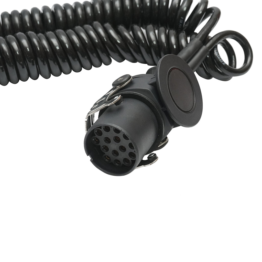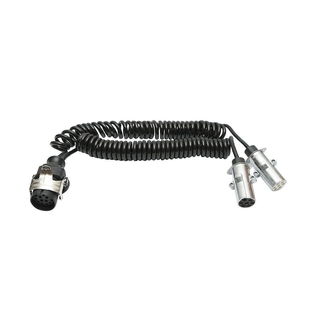 ABS ADAPTER KÁBEL, SPIRÁLOZOTT, Y ELOSZTÁSÚ, UTÁNFUTÓHOZ, 7/7–15 PÓLUS, 8JA 005 952-041, 502T1135 spirálos kialakítású Y-típusú adapterkábel, amely pótkocsik ABS rendszeréhez használható. A kábel egyik vége 7 pólusú, másik vége 15 pólusú csatlakozóval rendelkezik, így különböző szabványú rendszerek között biztosít átmenetet.