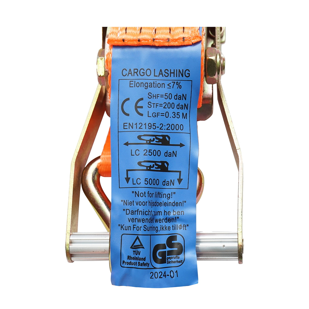 ÁRURÖGZÍTŐ HEVEDER, 15MX50MM, 5T (EGYSZERŰ RACSNI), BRECKNER GERMANY 15 méter hosszúságú és 50 mm széles áru rögzítő heveder, amely legfeljebb 5 tonna terhelés biztosítására alkalmas. Egyszerű mechanikus feszítőszerkezettel van ellátva, rakományok biztonságos rögzítésére használható.