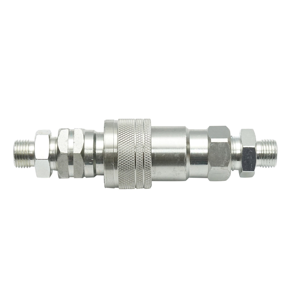 ÁTMENŐ SZELEP ANYA-APA KÚPOS CSATLAKOZÁSSAL, M20 MENETTEL, M16X20 ÁTALAKÍTÓKKAL (1/2" GYORSCSATLAKOZÓ ANYA+APA KÉSZLET), 92,8X37X29,6 MM egy kúpos kialakítású átmenőszelep készlet, amely tartalmazza az 1/2 colos anya- és apaelemeket. A készlet M20-as kúpos csatlakozással rendelkezik, valamint M16x20-as redukciókkal van ellátva. Kompakt mérete lehetővé teszi a könnyű beépítést hidraulikus rendszerekbe.