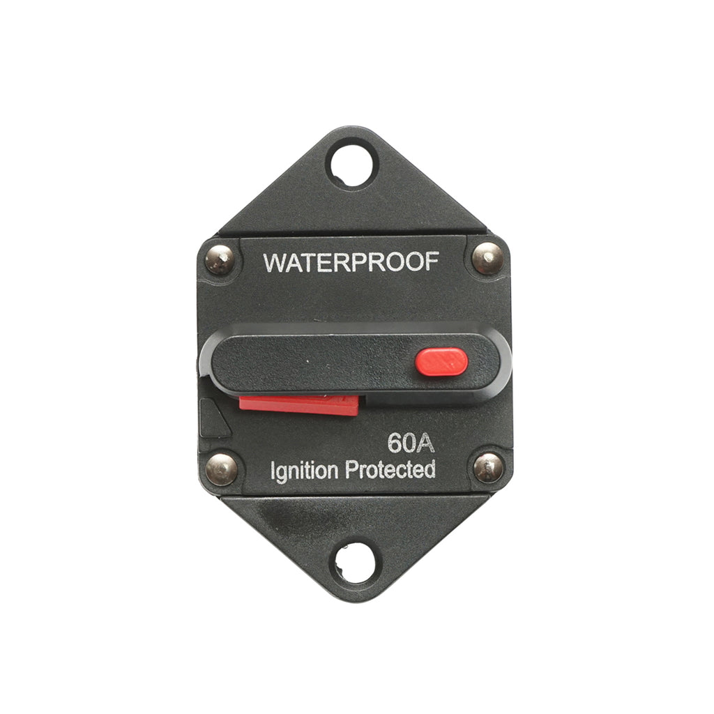 AUTOMATA BIZTOSÍTÉK, CB-E96, 60A, BRECKNER GERMANY 12–48 V tápfeszültséggel működik, névleges árama 60 A, CB-E96-60A sorozatú, IP67 védettséggel rendelkezik, mérete 74 x 48 mm, a rögzítőcsavarok közötti távolság pedig 61,3 mm.