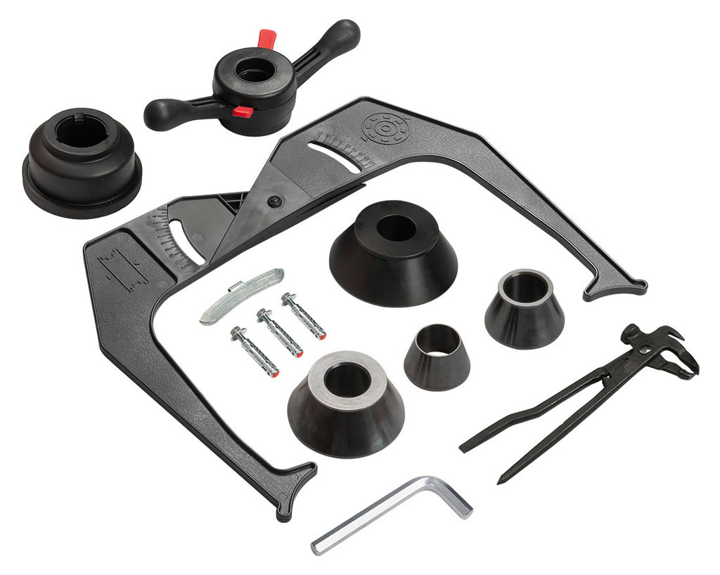 A standard felszerelés tartalmaz egy súlyrögzítőt, egy műanyag tolómérőt, négy kúpot 40 és 132 mm közötti átmérőkhöz, gyorskioldó anyát, kis perselyt, nagy hüvelyt és egy nyomtatott felhasználói kézikönyvet.