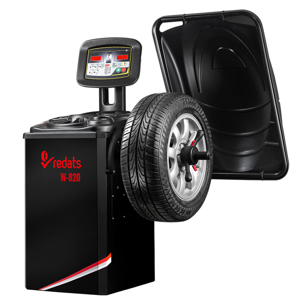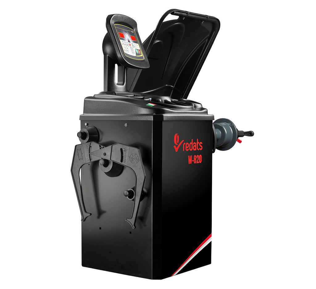 A AUTOMATA CENTÍROZÓ - KERÉK KIEGYENSÚLYOZÓ GÉP 8-35" W-820 REDATS autók, terepjárók és kisteherautók kerekeivel foglalkozó műhelyek számára készült. Támogatja a 8 és 35 hüvelyk közötti átmérőjű (automatikus üzemmódban akár 28 hüvelyk) és legfeljebb 75 kg súlyú kerekek kiegyensúlyozását. Lehetővé teszi akár 590 mm szélességű és legfeljebb 1120 mm átmérőjű kerekek kiegyensúlyozását.