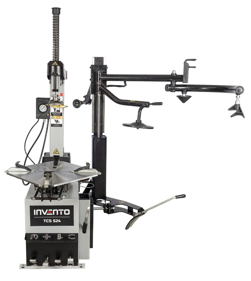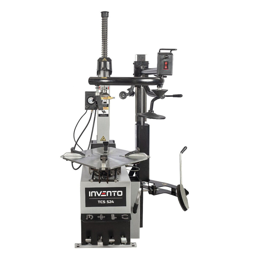 Az AUTOMATA GUMISZERELŐ – KERÉKSZERELŐ GÉP BEÉPÍTETT RUNFLAT SEGÉDKARRAL 24” 380 V INVENTO személygépkocsi abroncsok – beleértve a runflat és alacsony profilú gumiabroncsokat is – fel- és leszerelésére tervezett professzionális berendezés. Pneumatikusan dönthető szerelőoszloppal rendelkezik, munkapadja pedig 12”–24” közötti belső befogású és 14”–26” közötti külső befogású felnikhez kompatibilis. Maximum 13” széles kerekekkel és legfeljebb 1100 mm átmérőjű felnikkel használható. A peremtörő szerkezet 2500 kg erőkifejtésre képes.