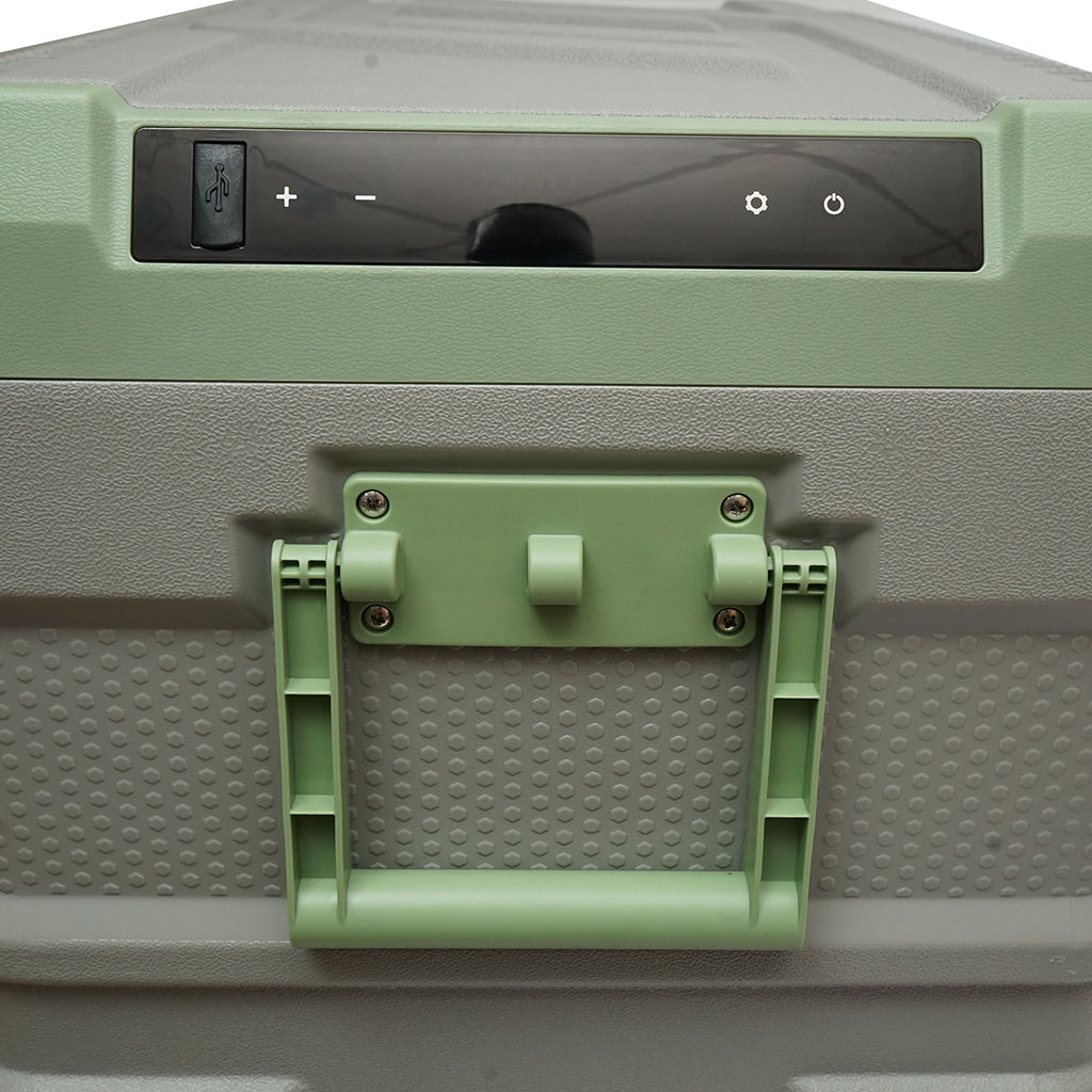 AUTÓS HŰTŐSZEKRÉNY KOMPRESSZORRAL, 60W, 64.2L KAPACITÁS, 12–24–220V TÁPFESZÜLTSÉG, LCD KIJELZŐ, USB, 692X416X585 MM, G65 AUTOSPEED kompresszoros hűtőberendezés, amely 64,2 literes űrtartalommal rendelkezik. A készülék 12 V, 24 V egyenáramról és 100–240 V váltakozó áramról egyaránt működtethető, a hőmérséklet –20 °C és +20 °C között állítható LCD kijelző segítségével. A hűtő Freon R1234yf hűtőközeget használ, és beépített USB-csatlakozóval is fel van szerelve. Zajszintje 45 dB, tömege 19,6 kg.