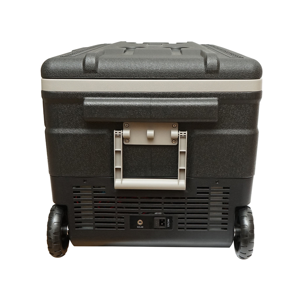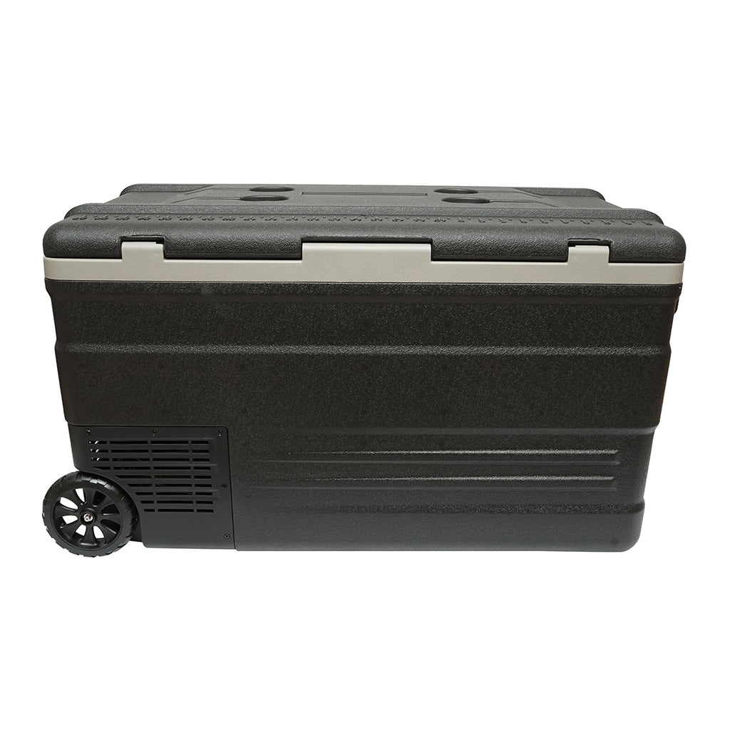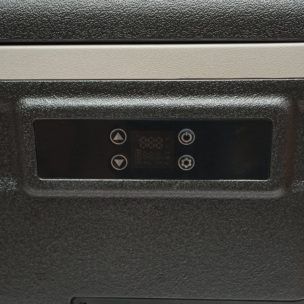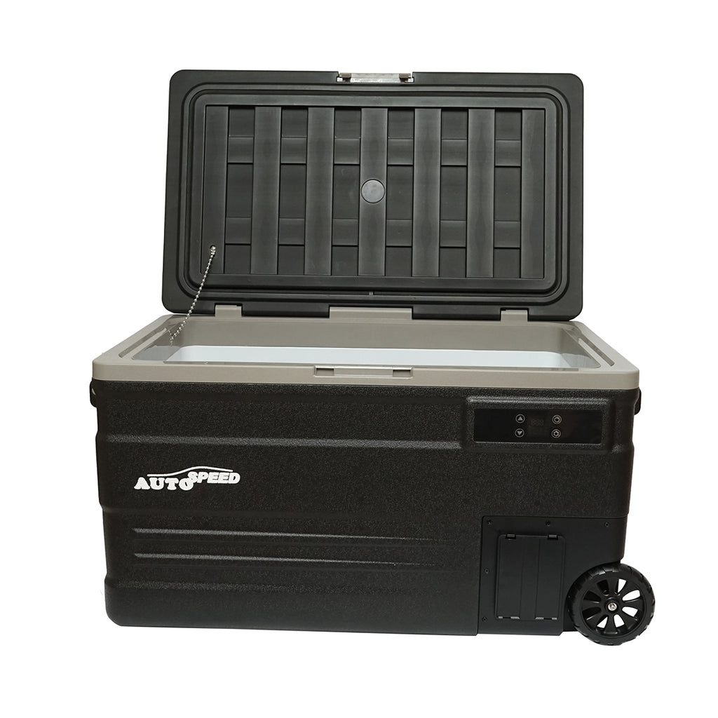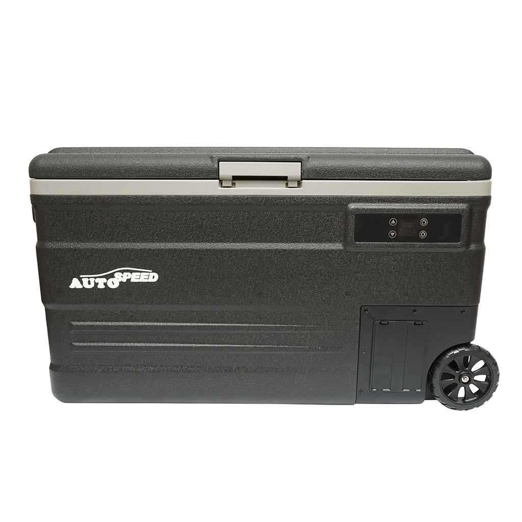 AUTÓS HŰTŐSZEKRÉNY KOMPRESSZORRAL, 80W, 74L KAPACITÁS, 12–24–220V TÁPFESZÜLTSÉG, LCD KIJELZŐ, 831X465X458 MM, U75E AUTOSPEED kompresszoros hűtőrendszerrel ellátott berendezés, amely 74 literes űrtartalommal rendelkezik. A készülék 12 V és 24 V egyenáramról, valamint 100–240 V váltakozó áramról is működtethető, és opcionálisan napelemről vagy akkumulátorról is üzemeltethető. A hűtési tartomány –20 °C és +20 °C között szabályozható LCD kijelző segítségével. A hűtő Freon R1234yf hűtőközeget használ, zajszintje 45 dB, tömege 21,9 kg.