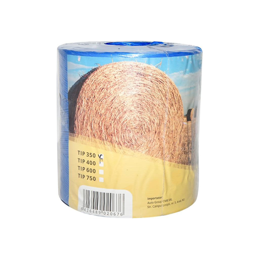 BÁLÁZÓ ZSINEG 350, 5 KG, BOURGET bálázógépekben használható kötözőanyag. A termék 100%-ban szűz polipropilénből készül, amely nagy szakítószilárdságot, valamint ellenállást biztosít a vegyi anyagokkal, rágcsálókkal, UV-sugárzással és nedvességgel szemben. A kötél minden típusú bálázógéppel kompatibilis.