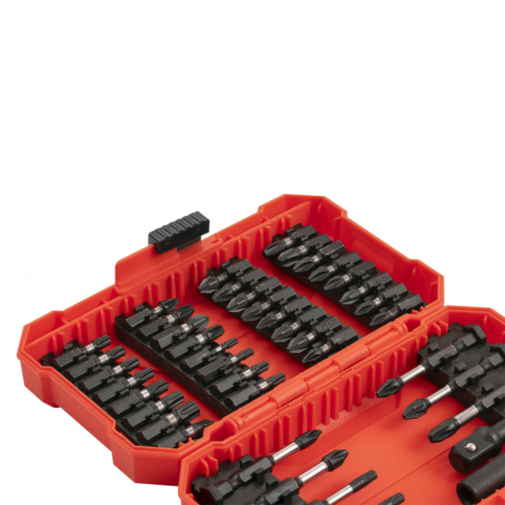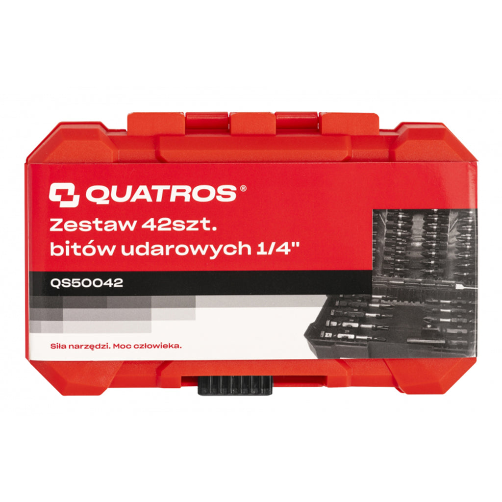 A BIT KÉSZLET ÜTVECSAVAROZÓHOZ 42 DB 1/4"-os, 25 mm hosszú, S2 acélból készült bitet tartalmaz, az alábbi kivitelben: PH1 (3 db), PH2 (3 db), PH3 (2 db), PZ1, PZ2 (8 db), PZ3 (3 db), T10, T15, T20 (2 db), T25 (4 db), T27, T30, T40 és SL6.