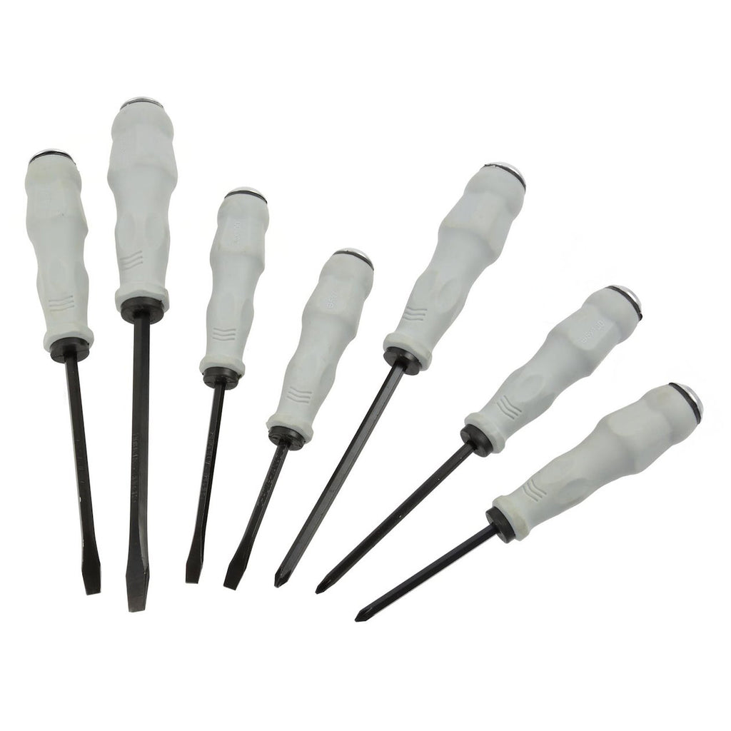 Az ergonomikus markolat biztos és kényelmes fogást nyújt használat közben. A készlet 7 darab csavarhúzót tartalmaz, lapos és Phillips (PH) kivitelben.