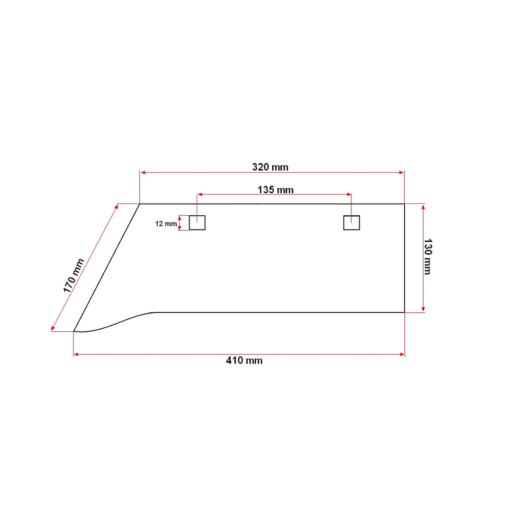 CSOROSZLYA PP2 TÍPUSHOZ SORMŰVELÉSHEZ, 410X320X130 MM, 2 DB 12 MM-ES RÖGZÍTŐFURATTAL, UKRÁN KIVITEL mezőgazdasági ekékhez használható alkatrész, amely PP2 típusú szántógépekhez illeszkedik. Mérete 410 x 320 x 130 mm, két darab, egyenként 12 mm átmérőjű rögzítőfurattal rendelkezik.