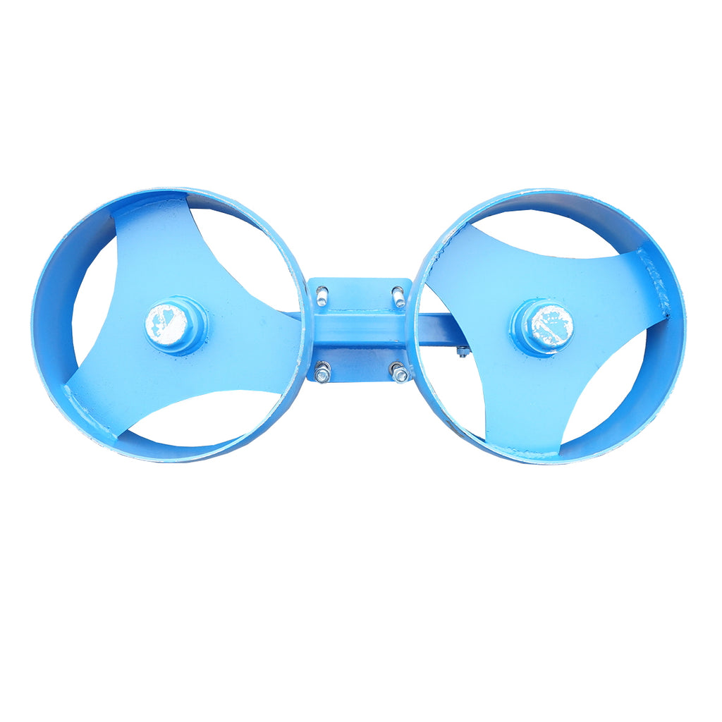 A DUPLA FÉM TÁMKERÉK VÁLTVAFORGATÓ EKÉHEZ fém kivitelű segédkerék hidraulikus váltvaforgató ekékhez. A kerék átmérője 335 mm, szélessége 127 mm. Az ikerkerék tengelyei közötti távolság állítható, minimum 490 mm, maximum 660 mm. A távolságállítást oldalanként 4 darab, egyenként 27 mm-es furat biztosítja. A furatok közötti távolság 120 mm, a tartóelemek közötti távolság 100 mm. A rögzítőfuratok átmérője 18 mm.