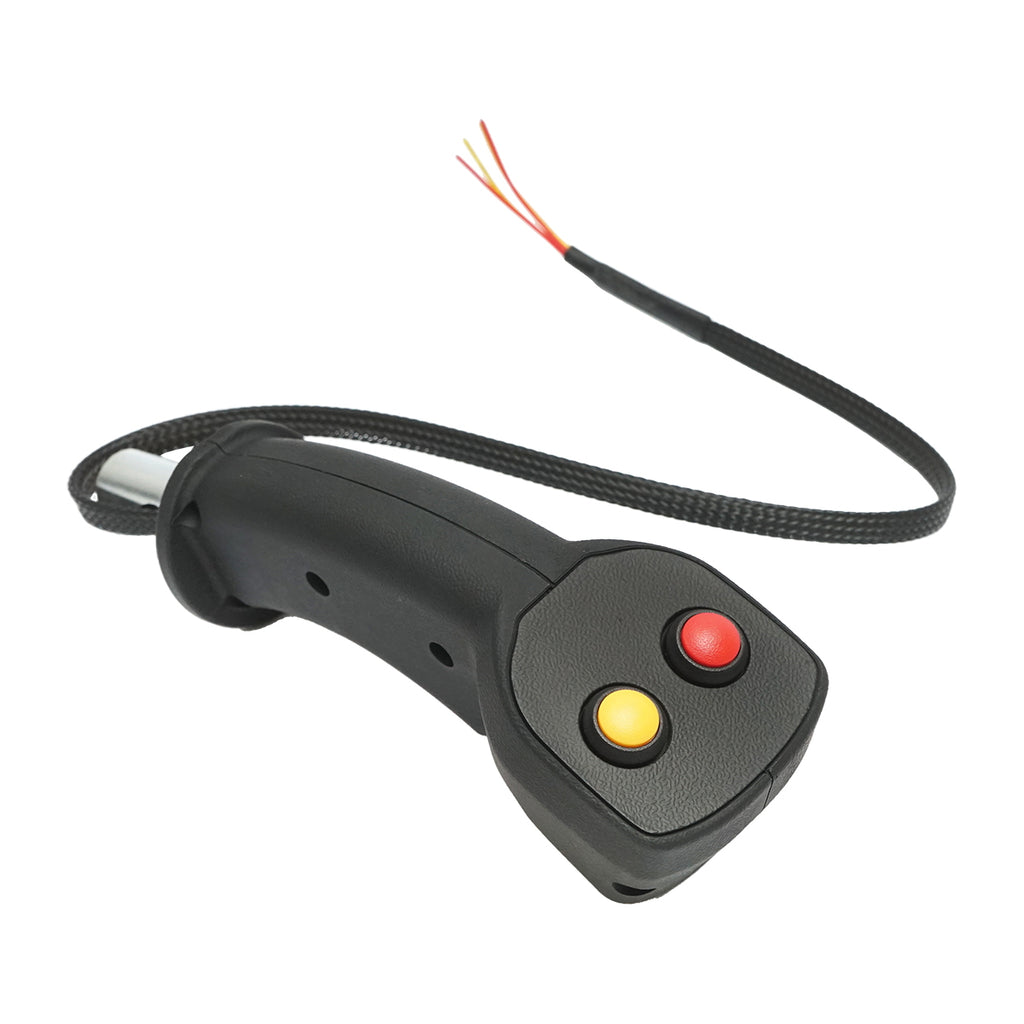 ELEKTROMOS JOYSTICK, 2 GOMBOS, L-DK-02 elektromos vezérlőkar, amely két beépített nyomógombbal rendelkezik. Ipari és mezőgazdasági gépek vezérlésére használható, többirányú mozgatást és két külön funkció vezérlését teszi lehetővé. A kivitel kompatibilis különféle vezérlőrendszerekkel.