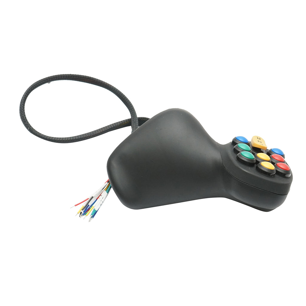 ELEKTROMOS JOYSTICK, 9 GOMBOS, H-DK-04 vezérlőkar különféle mezőgazdasági, ipari vagy erdészeti gépek hidraulikus funkcióinak irányítására. A joystick ergonomikus kialakítású, 9 nyomógombbal rendelkezik, így több funkció gyors és egyidejű vezérlésére is alkalmas.