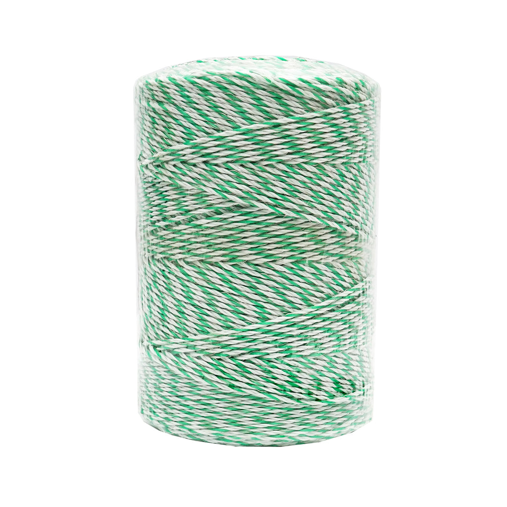 ELEKTROMOS KERÍTÉS DRÓTTEKERCS, FEHÉR-ZÖLD, 2,5 MM ÁTMÉRŐ, 4×0,2 MM ROZSDAMENTES ACÉL BETÉTTEL, ELLENÁLLÁS 7 OHM/M, 500 M, THOR