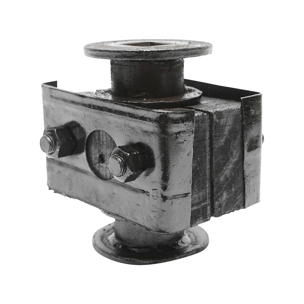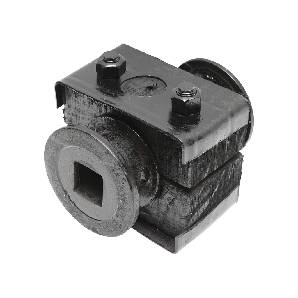 FA PORVÉDŐ KOMPLETT CSAPÁGYHÁZZAL, 32 MM NÉGYZET TENGELYHEZ mezőgazdasági gépekhez használt alkatrész, amely teljes fa házzal és 32 mm-es négyzet keresztmetszetű tengellyel rendelkezik.