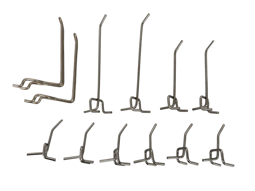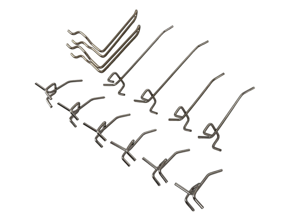 A FALI SZERSZÁMTARTÓ KAMPÓ KÉSZLET 12 DB GEBO TOOLS perforált rendszerező panelhez praktikus megoldást kínál a szerszámok falra történő rendszerezésére és rögzítésére, ideális műhelyekbe és garázsokba.