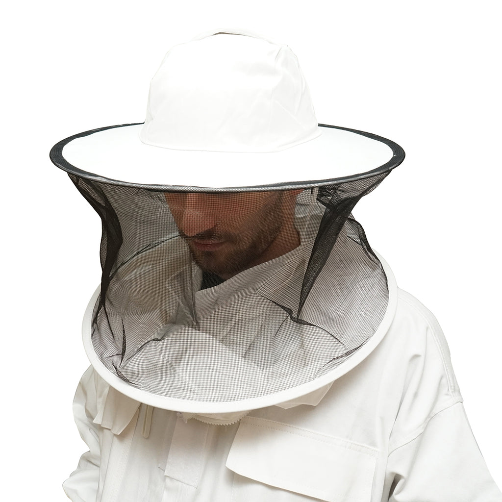 FEHÉR MÉHÉSZ KABÁT XL MÉRETBEN, VÉDŐMASZKKAL méhészek számára készült védőfelső, beépített arcvédő maszkkal. A hosszú ujjú blúz megakadályozza a méhek bejutását a ruha alá, míg a hálós maszk biztosítja a kilátást és a szellőzést. A méret XL-es, amely nagyobb testalkathoz igazodik.