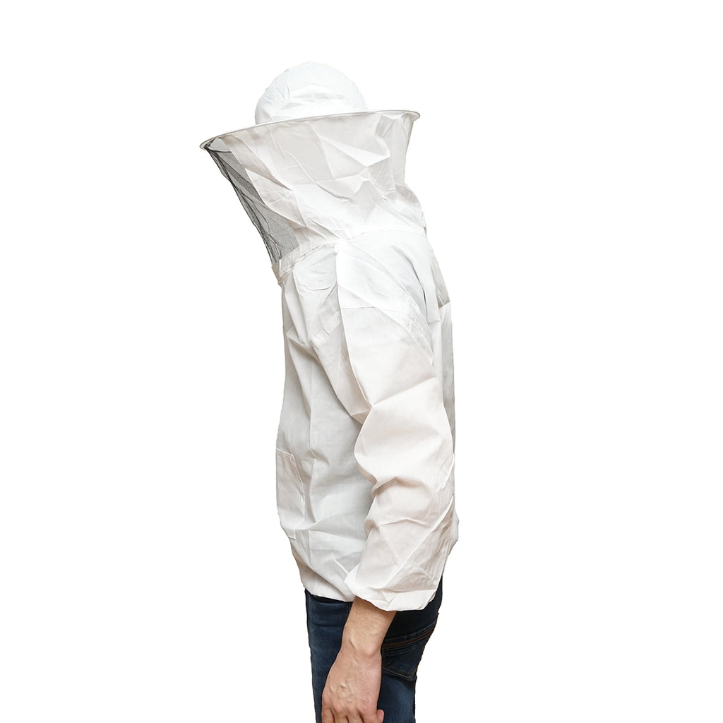FEHÉR MÉHÉSZ KABÁT XXL MÉRETBEN, VÉDŐMASZKKAL méhészeti munkák során nyújt védelmet. A ruhadarab fehér színű kivitelben készül, beépített védőmaszkkal rendelkezik, és XXL méretben érhető el.