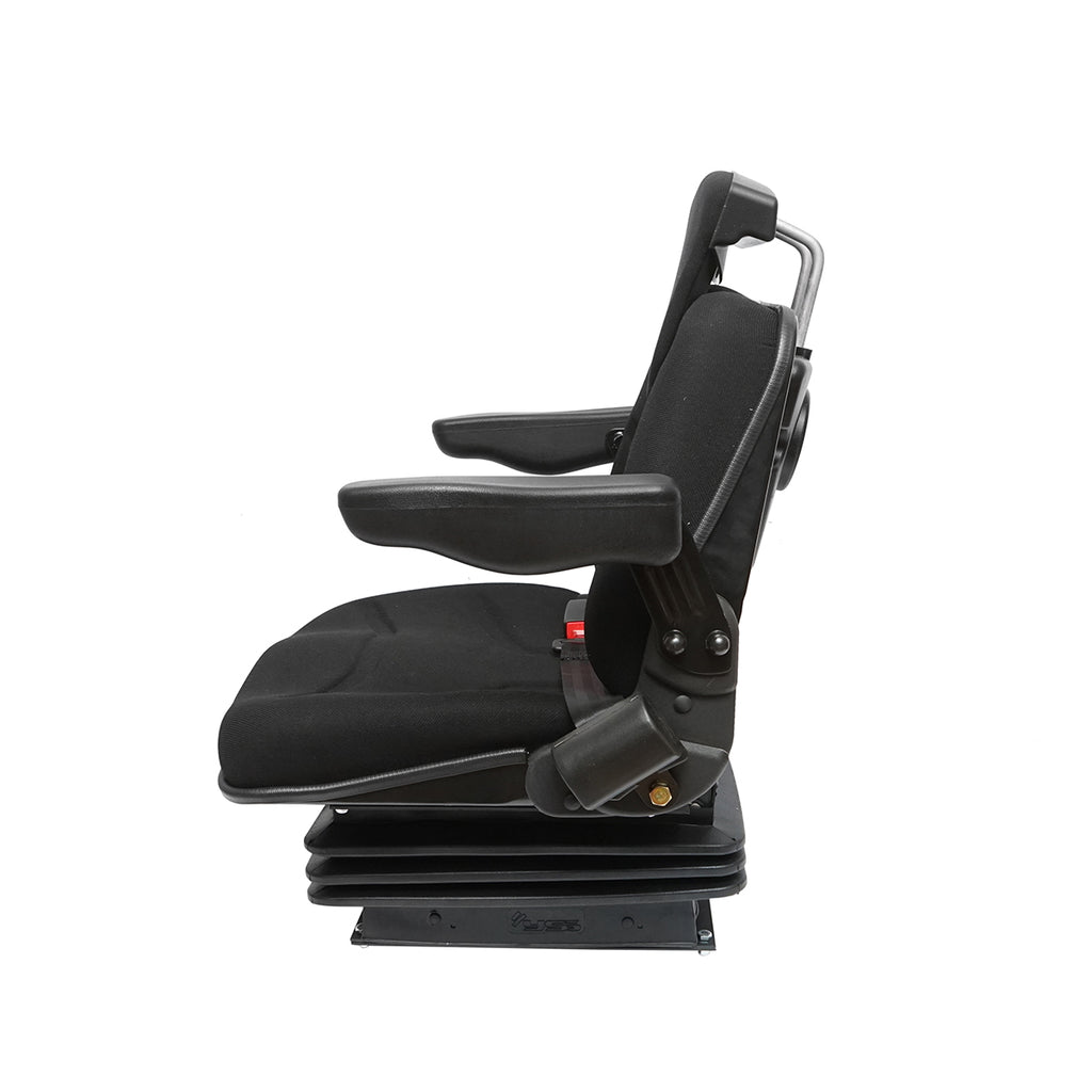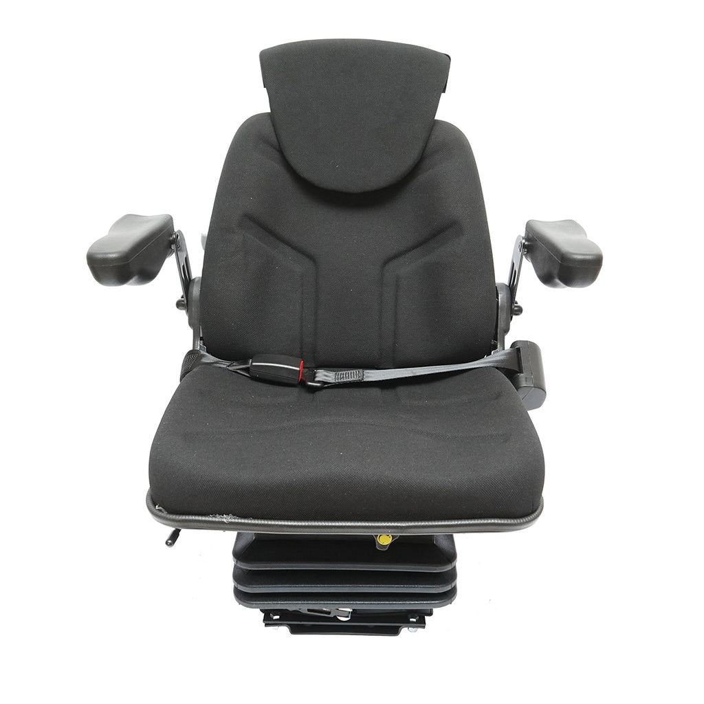 FEKETE TRAKTORÜLÉS, ÁLLÍTHATÓ, KARTÁMASSZAL, FEJTÁMLÁVAL, BIZTONSÁGI ÖVVEL ÉS MECHANIKUS FELFÜGGESZTÉSSEL, ÜLÉS SZÉLESSÉGE 455 MM