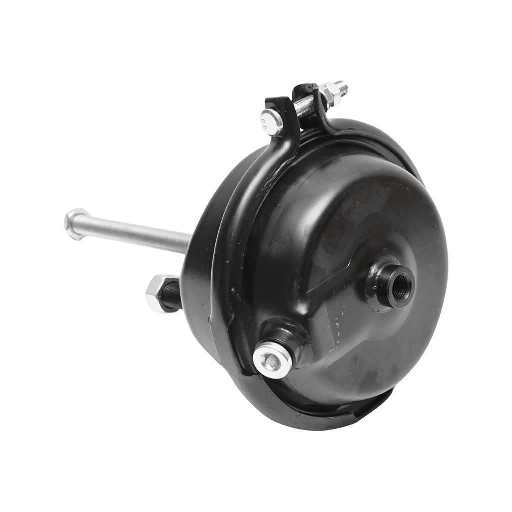 FÉKNYOMÁSKAMRA, EGYSZERES, T24, OEM KÓDOK: 4231069000, A0004207524, 0834483, 05.444.15.10.0, 77348, 84495, 81.51101.6058, 0070.100.24, 1118473, 051012, 1618593, BRECKNER GERMANY egyszeres működésű T24 fékkamra, 200 mm dugattyúrúdhosszal. Menete M16 x 1,5 mm, löket hossza 57 mm.
