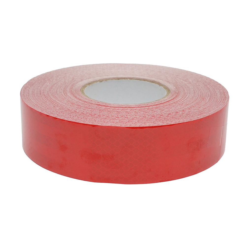 FÉNYVISSZAVERŐ SZALAG, PIROS, 45,7 M / TEKERCS piros színű, nagy fényvisszaverő képességű jelölőszalag, amely 45,7 méter hosszú és 55 mm széles. Alkalmas járművek, pótkocsik, gépek vagy munkaterületek láthatóságának növelésére alacsony fényviszonyok mellett.