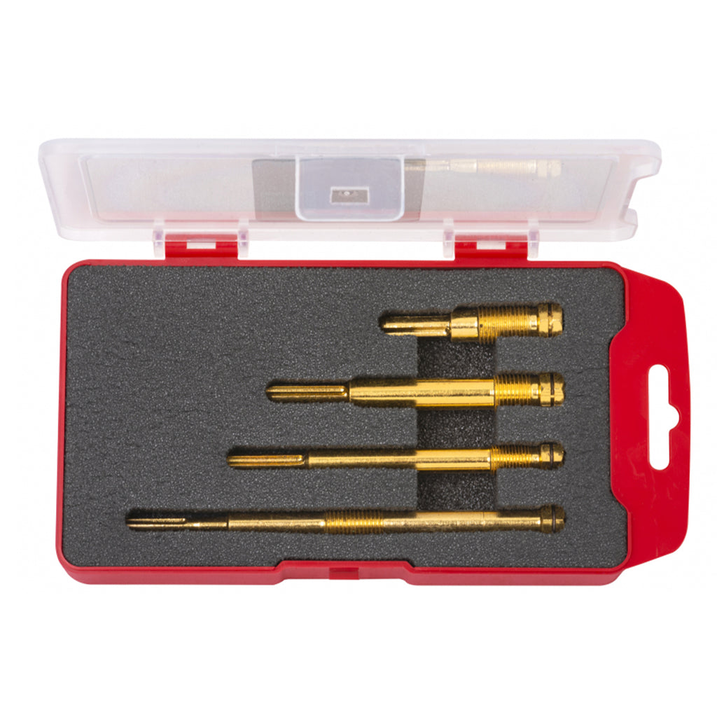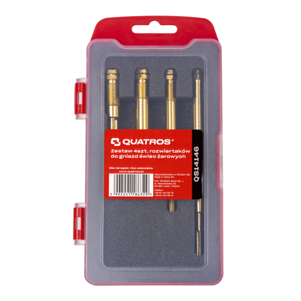 Ez a FÚRÓSZÁR KÉSZLET GYÚJTÓGYERTYA FURATOK TISZTÍTÁSÁHOZ ÉS FELÚJÍTÁSÁHOZ 4 DB a gyújtógyertya furatának tisztítására szolgál, és ajánlott használni új izzítógyertya beszerelése előtt. Kompatibilis a legtöbb dízelmotorral.