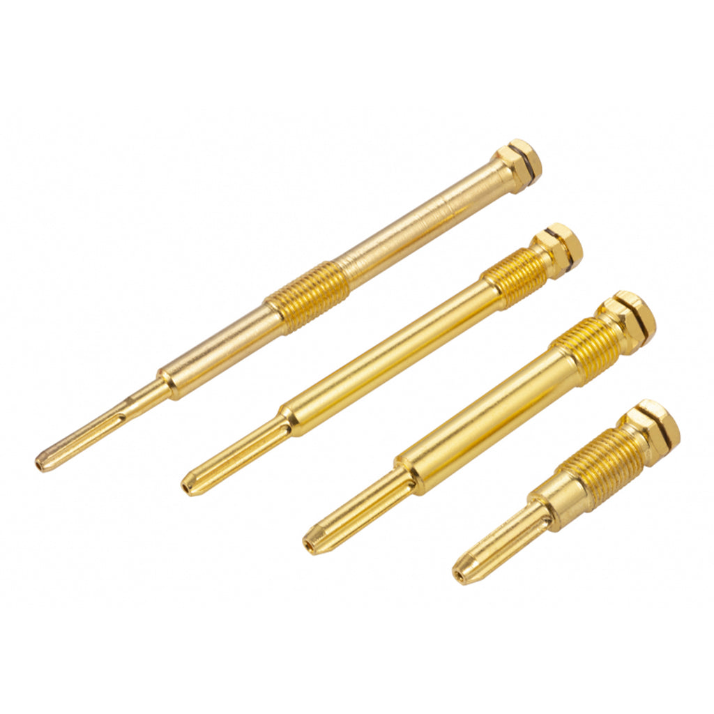 A készlet tartalmazza: M10 x 1,00, 107 mm hosszúságban; M10 x 1,25, 137 mm hosszúságban; M12 x 1,25, 59 mm hosszúságban; M12 x 1,25, 94 mm hosszúságban. A marók 40CR anyagból készültek, rézbevonattal.