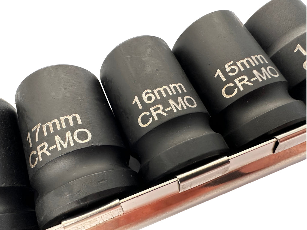 Ez a GÉPI BI-HEXAGONÁLIS DUGÓKULCS KÉSZLET RÖVID 10 DB 1/2" 12 OLDAL 1/2 colos meghajtással használható. A bi-hexagonális kialakítás azt jelenti, hogy a dugókulcsok 12 éllel rendelkeznek, amely jobb tapadást és biztosabb illeszkedést nyújt a csavar- és anyafejekhez a hagyományos, 6 élű kivitelhez képest.