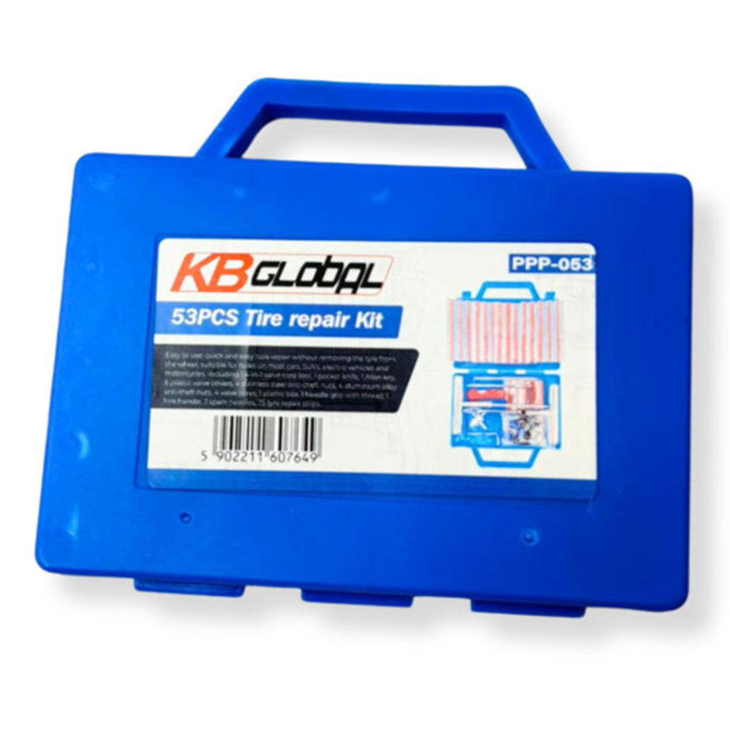 Ez a GUMIJAVÍTÓ KÉSZLET JAVÍTÓSZÁR BEHÚZÓVAL 53 DB ideiglenes javítások gyors elvégzésére szolgál defektes abroncsok esetén. A készlet tartalmaz egy tűszúró szerszámot, egy fúróeszközt cserélhető fejekkel, egy kést, egy szelepkioldó kulcsot, javítókötél-darabokat, valamint szelepeket és szelepsapkákat, így minden szükséges eszközt biztosít a kisebb sérülések helyreállításához.