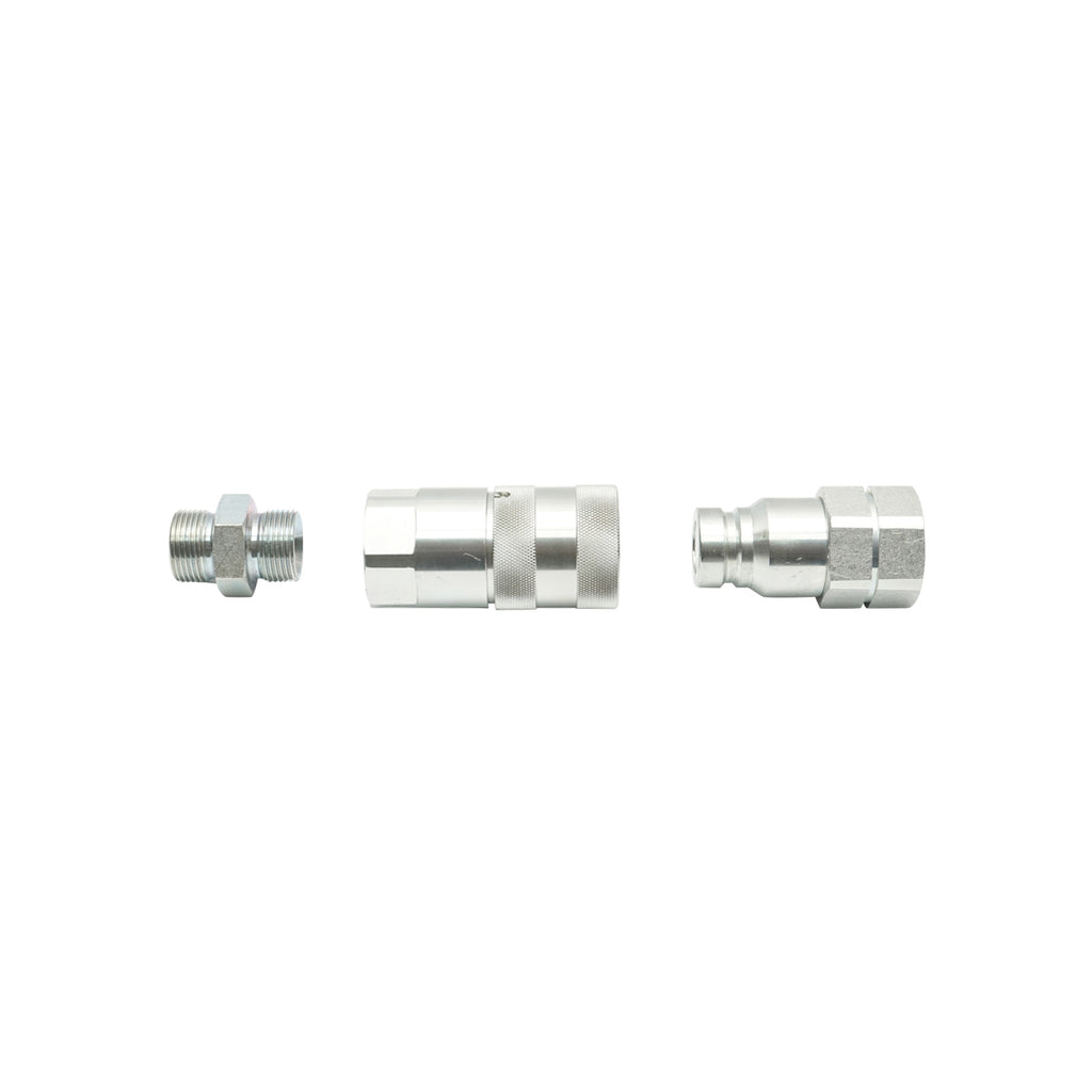 GYORSCSATLAKOZÓ KÉSZLET 1" (ANYA + APA) EGYENES ADAPTERREL, 93X45X48 MM egyenes kialakítású, gyorscsatlakozó készlet, amely tartalmazza a csatlakozó anya- és apaelemet. A csatlakozás 1 colos méretű, az adapter mérete 93 × 45 × 48 mm.