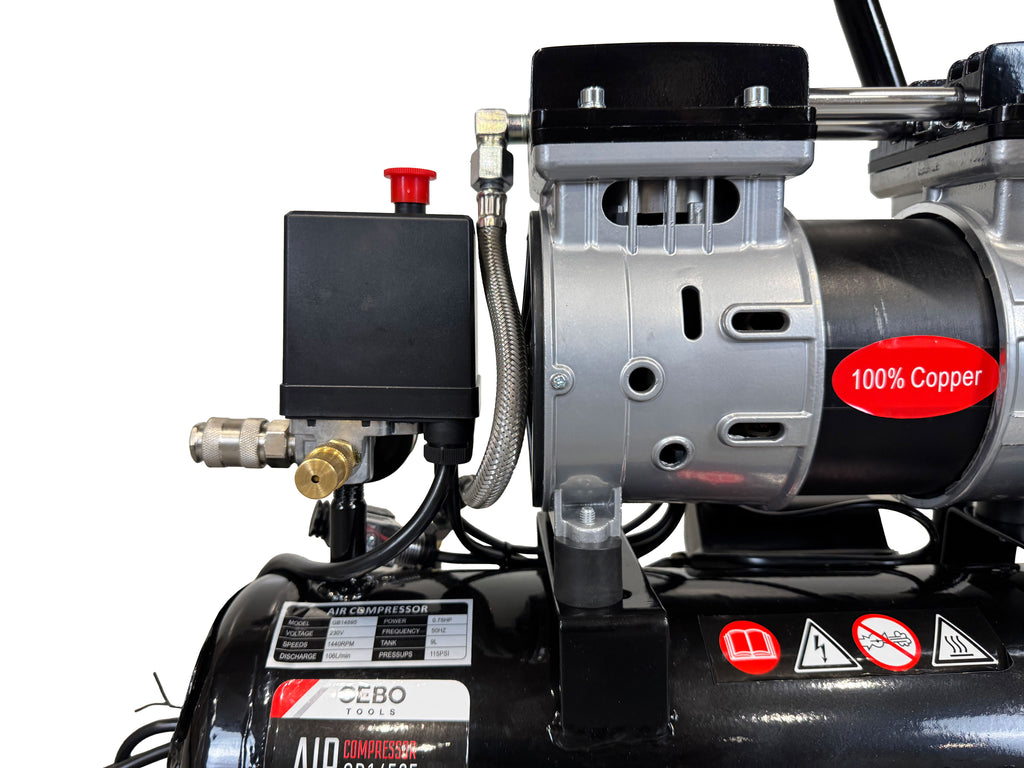 A légszállítás 106 L/perc 0 bar nyomáson, illetve 30 L/perc 7 bar nyomáson. A zajszint 65 dB. A kompresszor olajmentes kivitelű, így nem igényel kenéssel járó karbantartást.