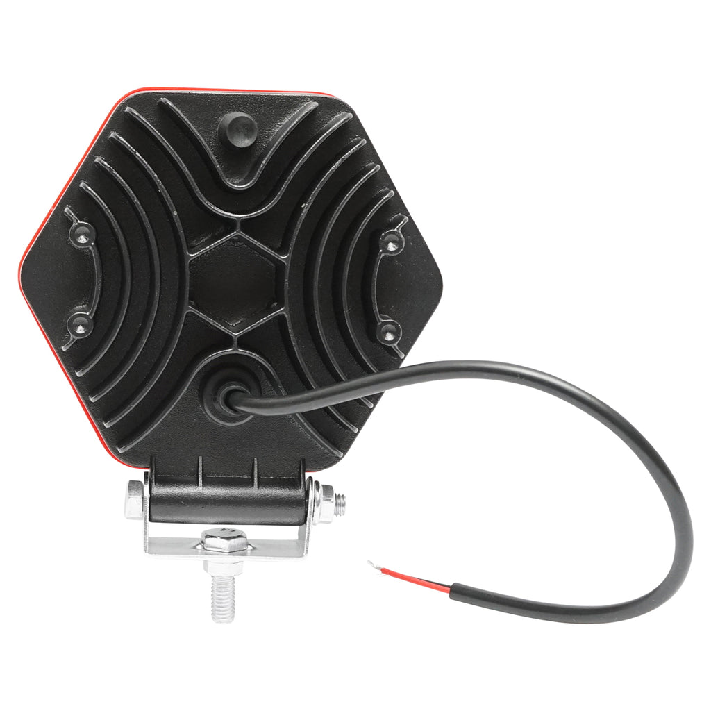 Ez a különleges kialakítású, hatszögletű LED munkalámpa 16 darab LED-del és piros műanyag rácsozással van ellátva. A 30°-os sugárzási szög fókuszált megvilágítást biztosít, ideális célzott munkaterületek megvilágítására. A 10–60V közötti működési feszültség széles körű kompatibilitást tesz lehetővé, míg a 1778 lumenes fényerő és a 6000K színhőmérséklet erős, fehér fényt biztosít kültéri és ipari felhasználásra egyaránt.