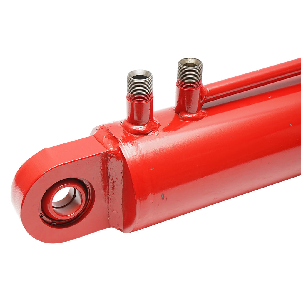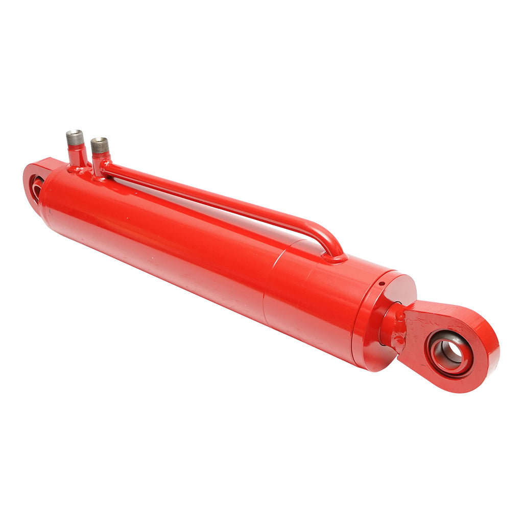 HIDRAULIKUS MUNKAHENGER ERDEI TRAKTORHOZ PIROS SZÍNBEN RAL2002, 704X403 MM MÉRETBEN egy nagy teherbírású hidraulikus munkahenger, amelyet erdészeti traktorok emelő- vagy billentőrendszereiben használnak. A robusztus felépítésű henger RAL2002 színkóddal festett, 403 mm-es lökethosszal és 50 mm átmérőjű dugattyúrúddal rendelkezik.
