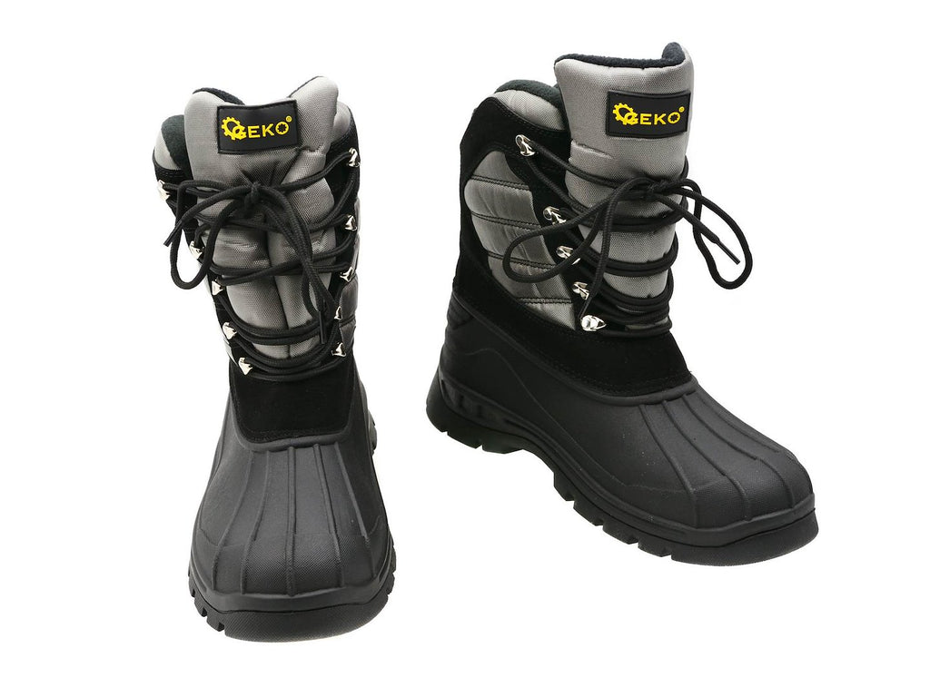 Ez a HÓCSIZMA 43-AS MÉRET GEKO poliészter, nejlon, poliuretán és gumi kombinációjából készül. A talp hossza 28,4 cm, amely a 43-as méretnek felel meg, a pár teljes tömege pedig körülbelül 1,6 kg.