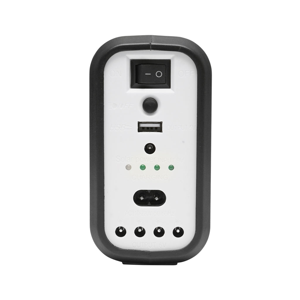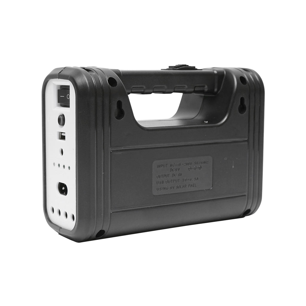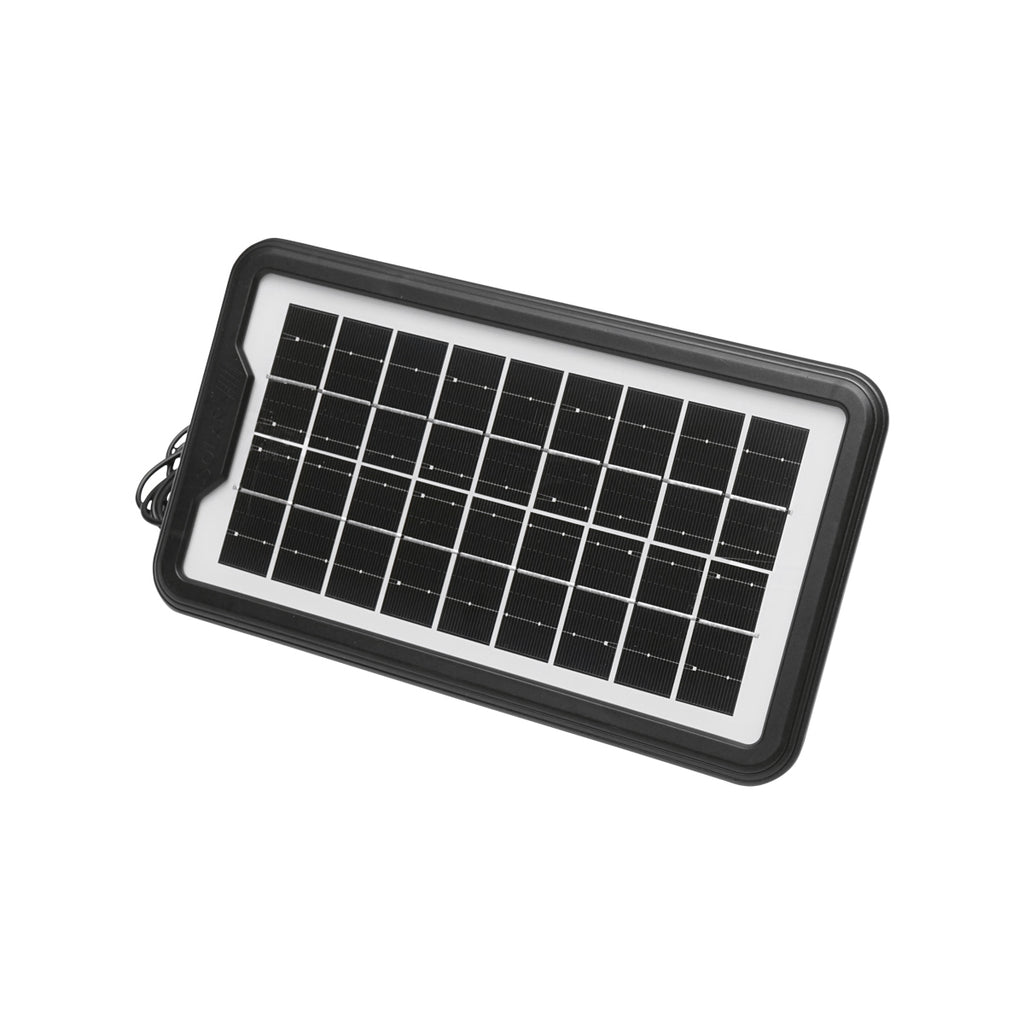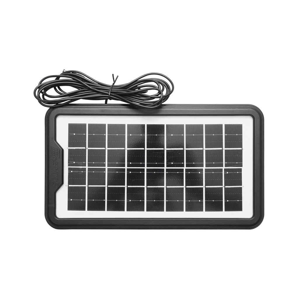 HORDOZHATÓ LED VILÁGÍTÁSI KÉSZLET 3 IZZÓVAL/PROJEKTORRAL, NAPELEMMEL ÉS 6V, 3AH AKKUMULÁTORRAL, HORGÁSZATHOZ, KEMPINGEZÉSHEZ, GD-8017COB egy hordozható világítókészlet, amely napelemes töltéssel működik. A rendszer egy monokristályos, 2 W teljesítményű és 5 V feszültségű napelemmel van ellátva. Három darab, egyenként 90 lumen fényerejű LED-izzó, valamint egy 150 lumen fényerejű LED-projektor biztosítja a világítást. Az izzók 3 méteres kábellel csatlakoztathatók. A működtetést egy 6 V, 3 Ah kapacitású ólomakkumulátor biztosítja, a készülék 5 V USB kimenettel is rendelkezik. A napelem mérete 260 x 150 mm, a vezérlőmodul mérete 260 x 170 mm.