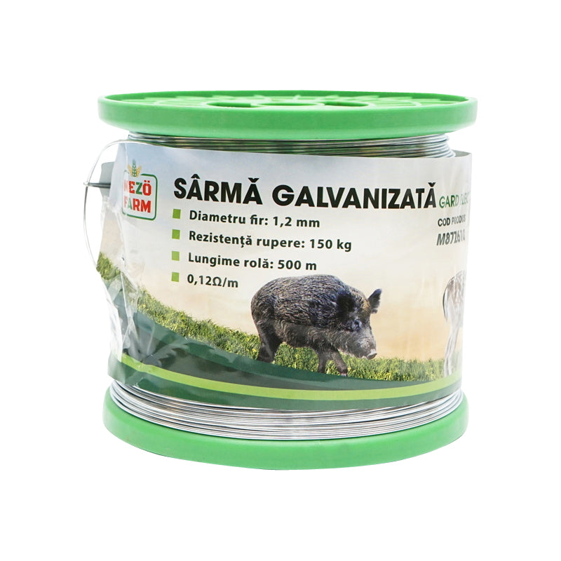 A Mezofarm márkájú 1,2 mm vastag galvanizált huzal 500 méteres hosszban kiváló választás villanypásztor kerítésekhez. A galvanizált anyag hosszú élettartamot és korrózióállóságot biztosít. A huzal 150 kg szakítószilárdságú, így erős és megbízható kerítést képez. Az ellenállása 0,12 Ohm/m, ami hatékony elektromos vezetést tesz lehetővé.