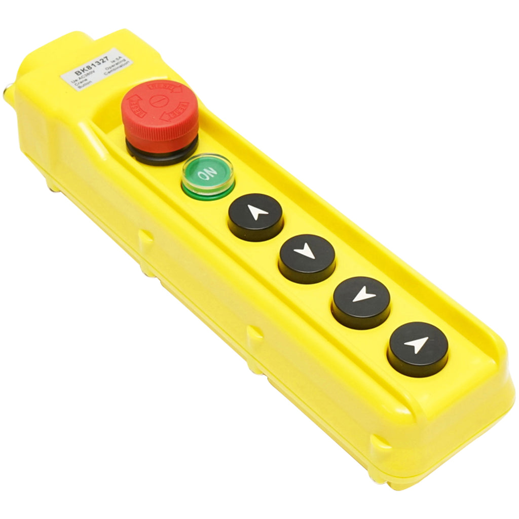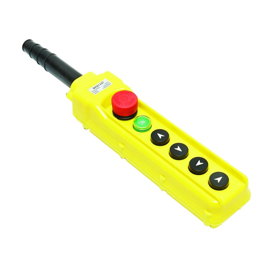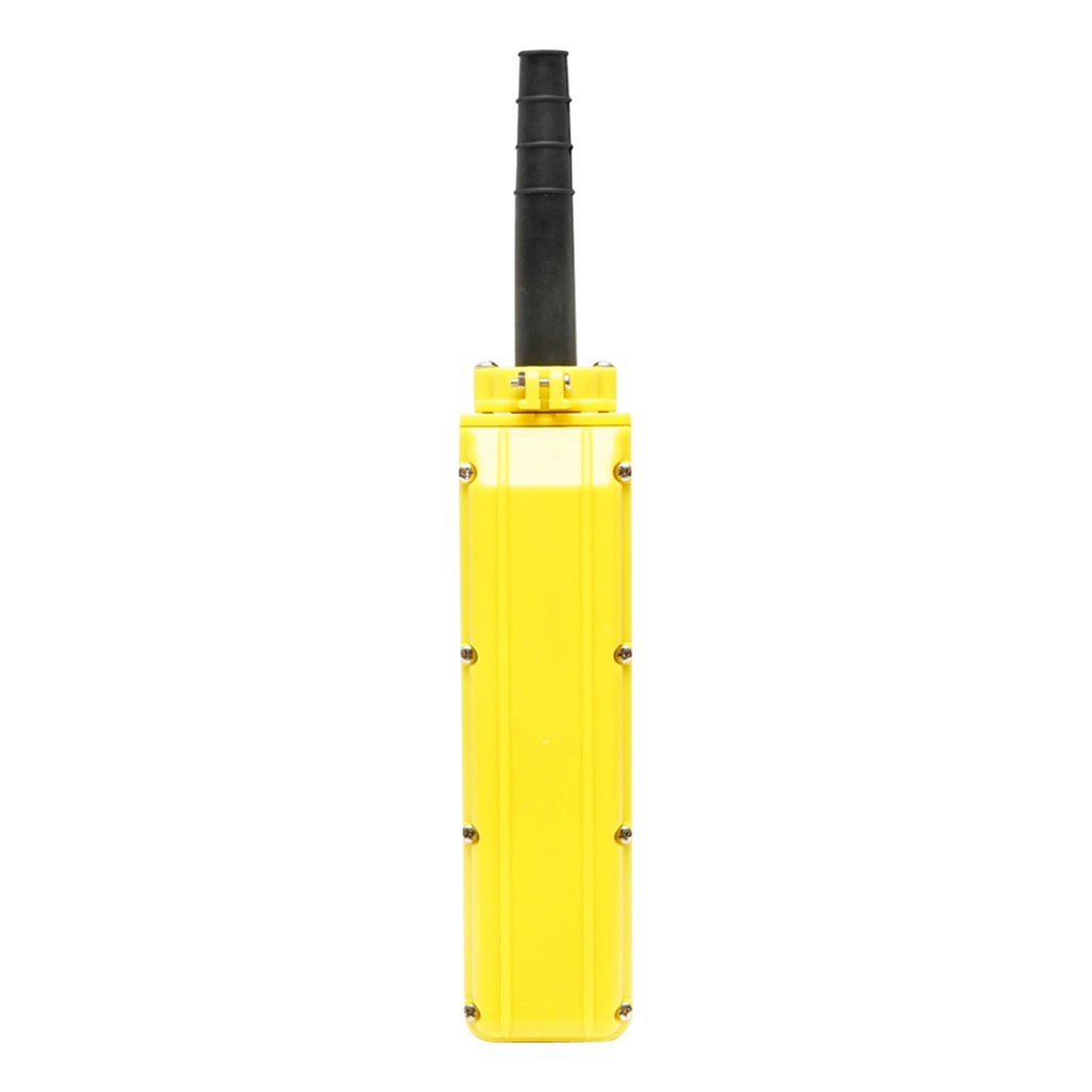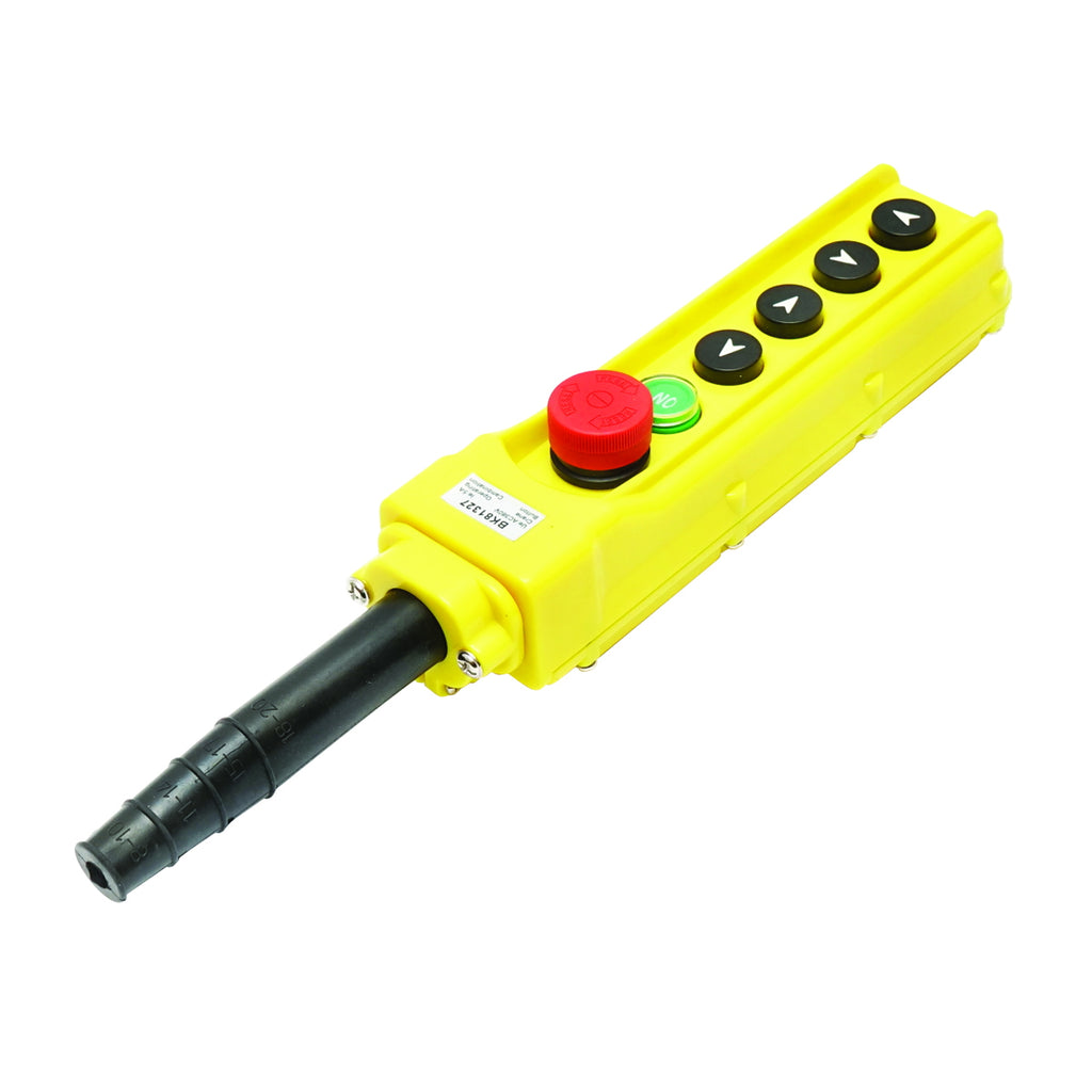 A Breckner Germany 6 gombos ipari távirányítója 380V-os háromfázisú rendszerekhez készült, ideális daruk, emelőszerkezetek, motorok és ipari gépek vezérlésére. Robusztus kialakításának és ergonomikus formájának köszönhetően hosszú távon is megbízható, biztonságos kezelést biztosít.