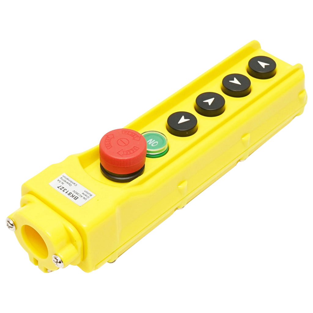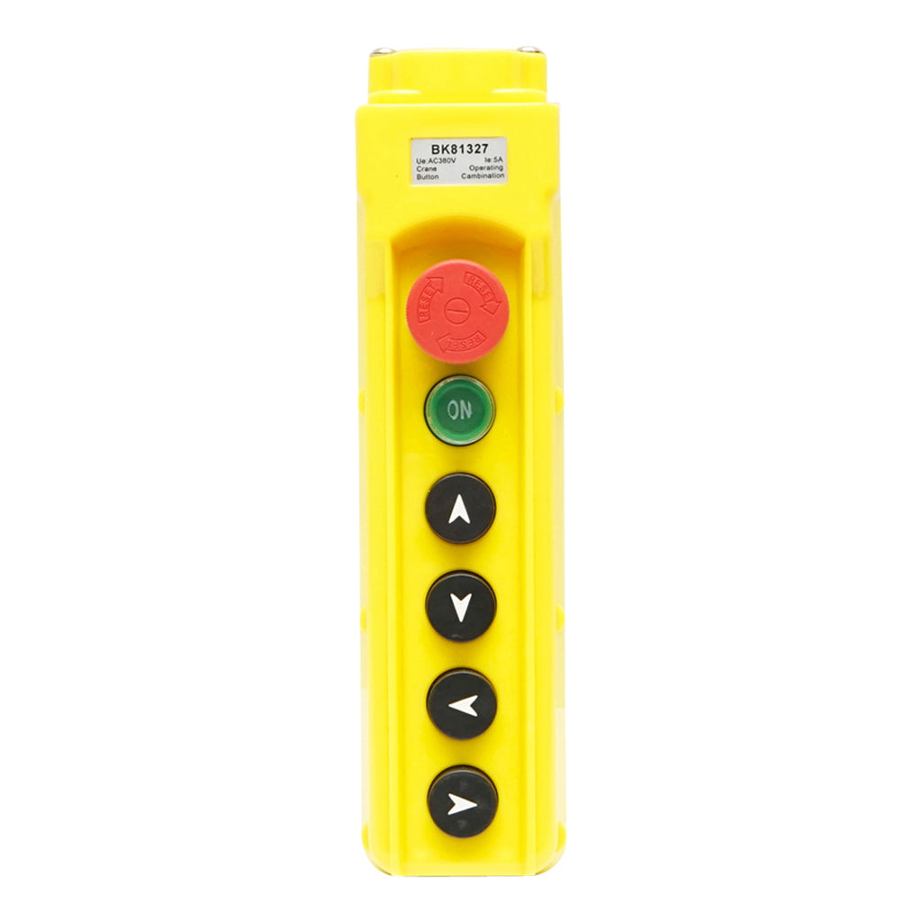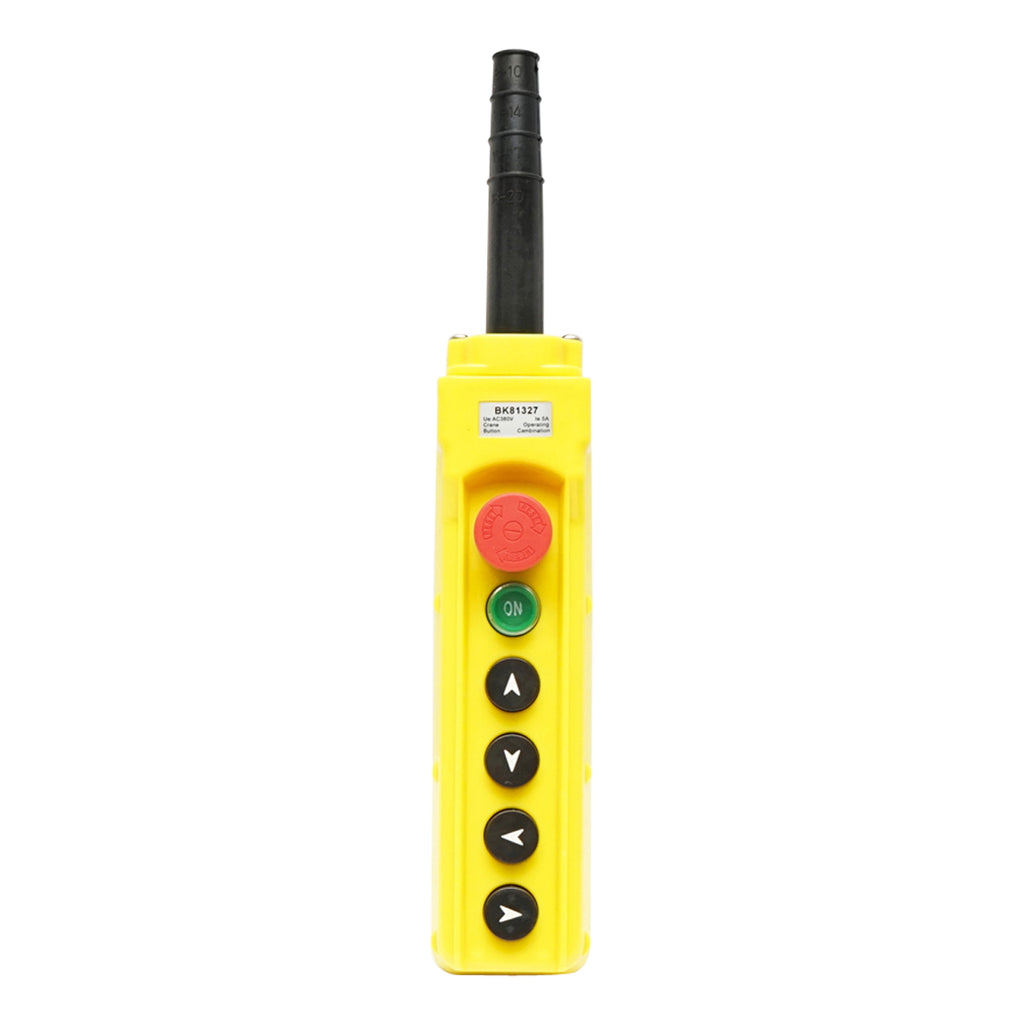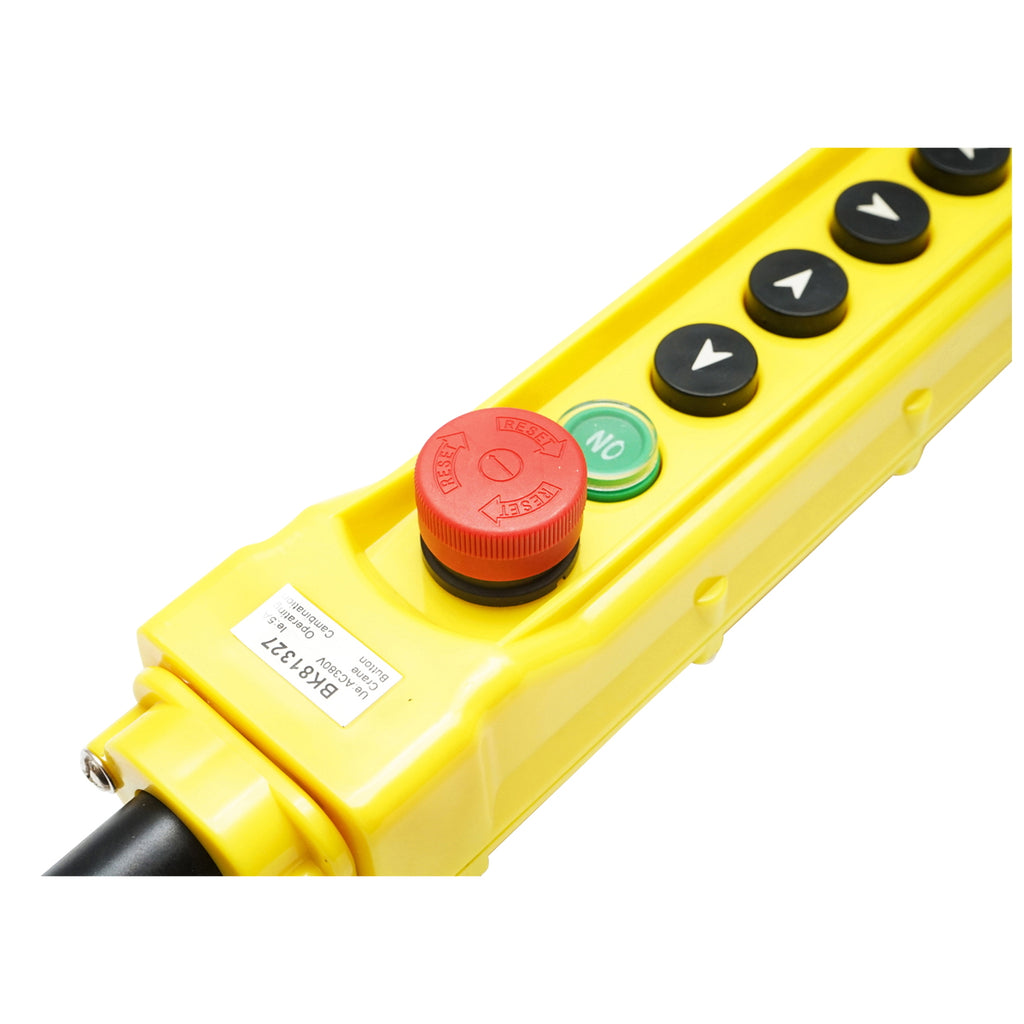 A Breckner Germany 6 gombos ipari távirányítója 380V-os háromfázisú rendszerekhez készült, ideális daruk, emelőszerkezetek, motorok és ipari gépek vezérlésére. Robusztus kialakításának és ergonomikus formájának köszönhetően hosszú távon is megbízható, biztonságos kezelést biztosít.