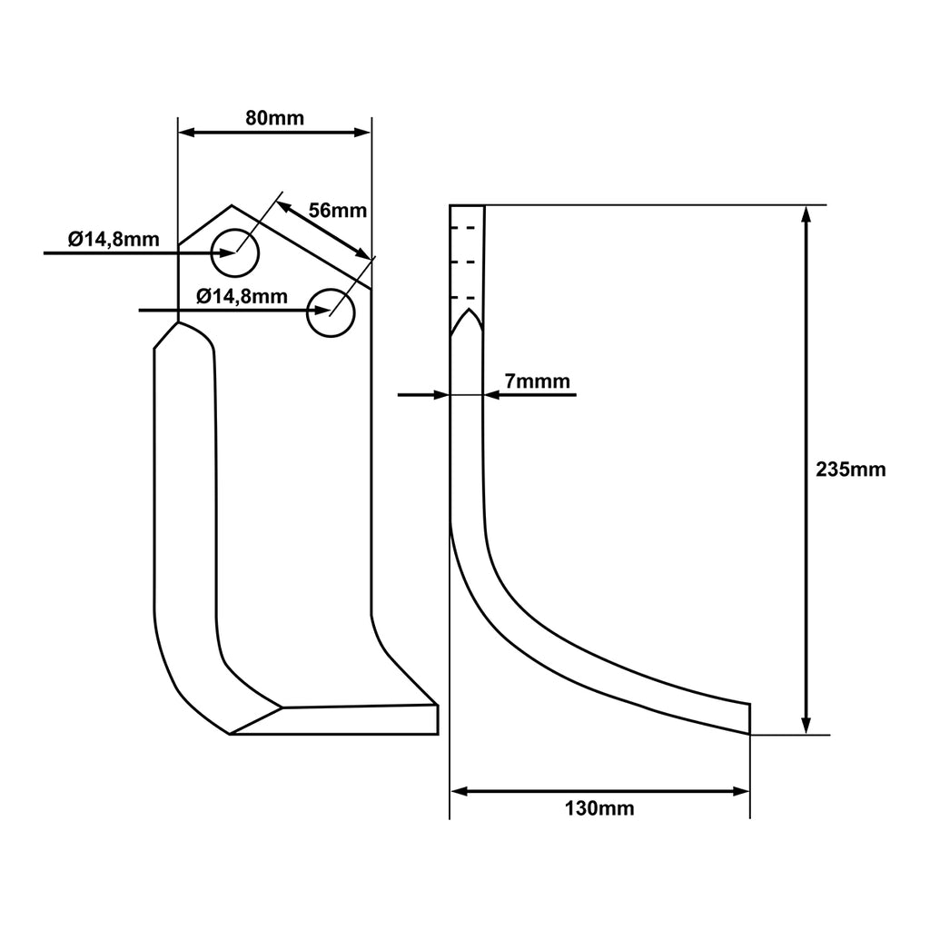 Jobboldali kialakítású kés HTL típusú talajmarókhoz. Edzett acélból készült, nagy kopásállósággal rendelkezik, hosszú élettartamra tervezve. Kiválóan alkalmas talajművelési munkákhoz, könnyen cserélhető.