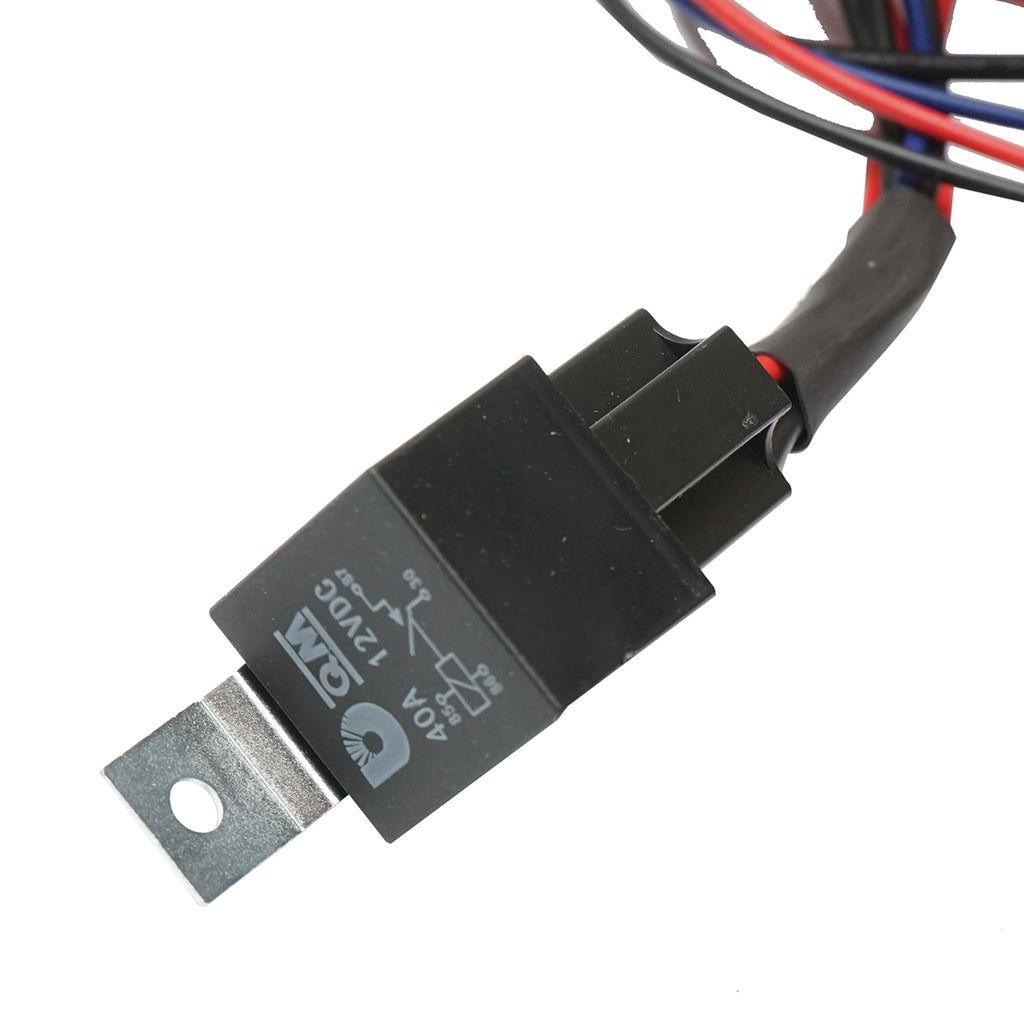 KÁBELKÖTEG NYOMÓGOMBBAL, RELÉVEL ÉS BIZTOSÍTÉKKAL, 12V/40A, BRECKNER GERMANY kiegészítő világítás bekötésére szolgáló szerelék. A kapcsoló 22,7 mm átmérőjű, rögzítési átmérője 20 mm. A rendszer 12 V feszültségen működik, legfeljebb 40 A áramerősséggel. A kapcsoló kábelének hossza 2700 mm, a csatlakozó kábel hossza pedig 3000 mm.