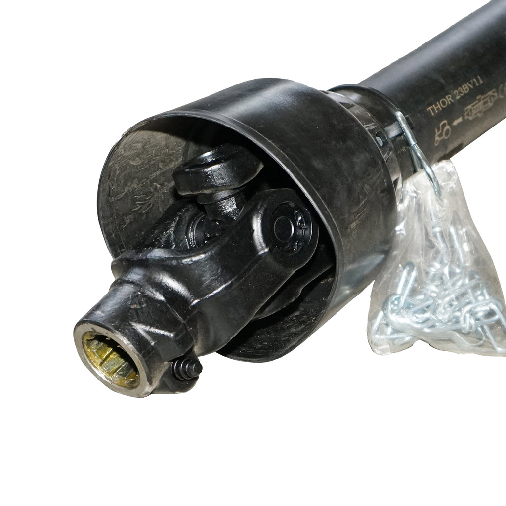 A KARDÁNTENGELY 2000 MM, T4, Z=6, KERESZT 27X74,6 MM, HÁROMSZÖG ALAKÚ CSŐVEL mezőgazdasági gépek meghajtására szolgáló kardántengely. Teljes hossza 2000 mm, háromszög keresztmetszetű csőből készült. A kereszttengely mérete 27 x 74,6 mm, a csatlakozás 1 3/8 col, 6 bordás tengelyvég (Z6).
