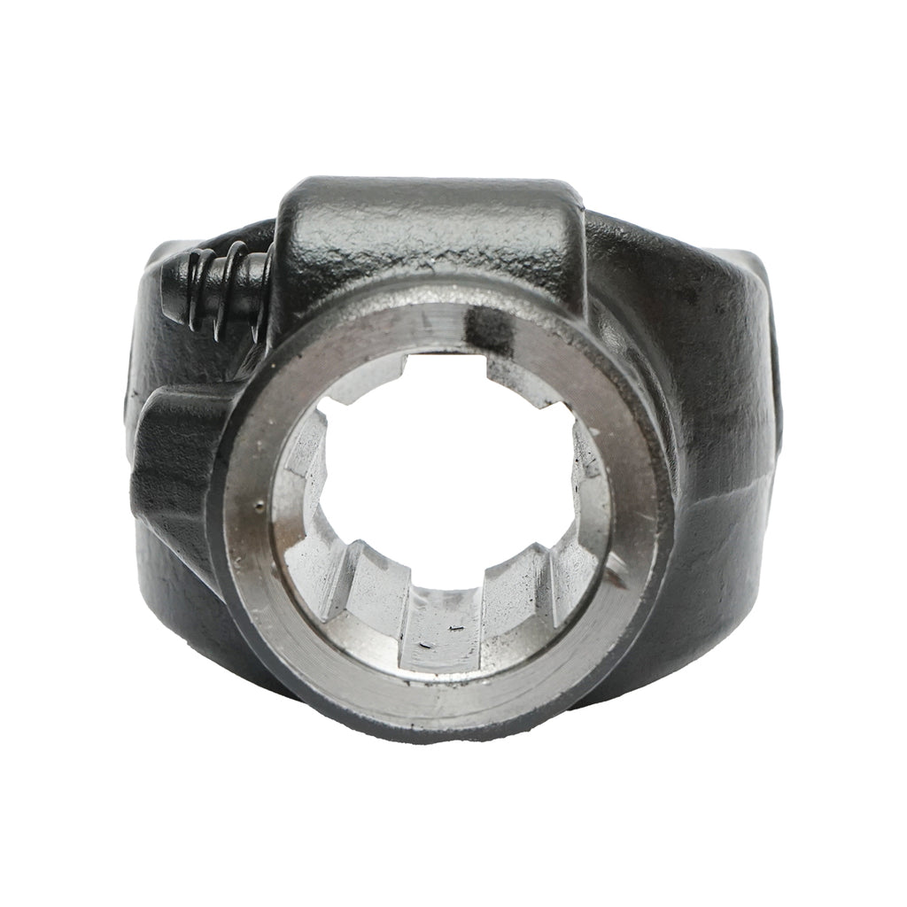 A T4 típusú kardánfurka hat bordás csatlakozással készült, és 27 x 74,6 milliméteres kereszttel kompatibilis. Ez a furka a traktor hat bordás kihajtótengelyére csatlakozik, biztosítva a megbízható és erős nyomatékátvitelt a munkagép felé. Strapabíró kialakításának köszönhetően kiváló választás közepes teljesítményű mezőgazdasági gépekhez, ahol fontos a biztonságos és hosszú távon stabil csatlakozás.