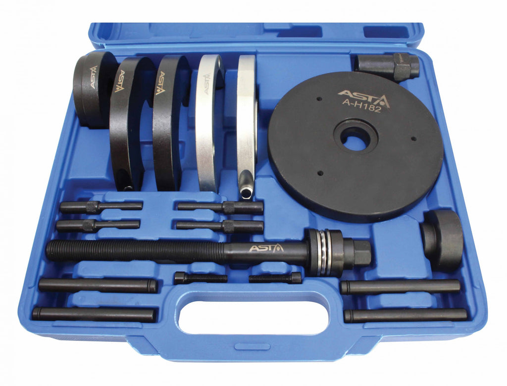 Ez a KERÉKAGY CSAPÁGY SZERELŐ KÉSZLET 82 MM II GENERÁCIÓ FORD, VOLVO, LAND ROVER 82 mm átmérőjű kerékagycsapágyak szerelésére és kiszerelésére szolgál. A készlet használata lehetővé teszi a csapágy-agy egység megfelelő szögben történő ki- és beszerelését, így segít megelőzni a ház és más alkatrészek sérülését.