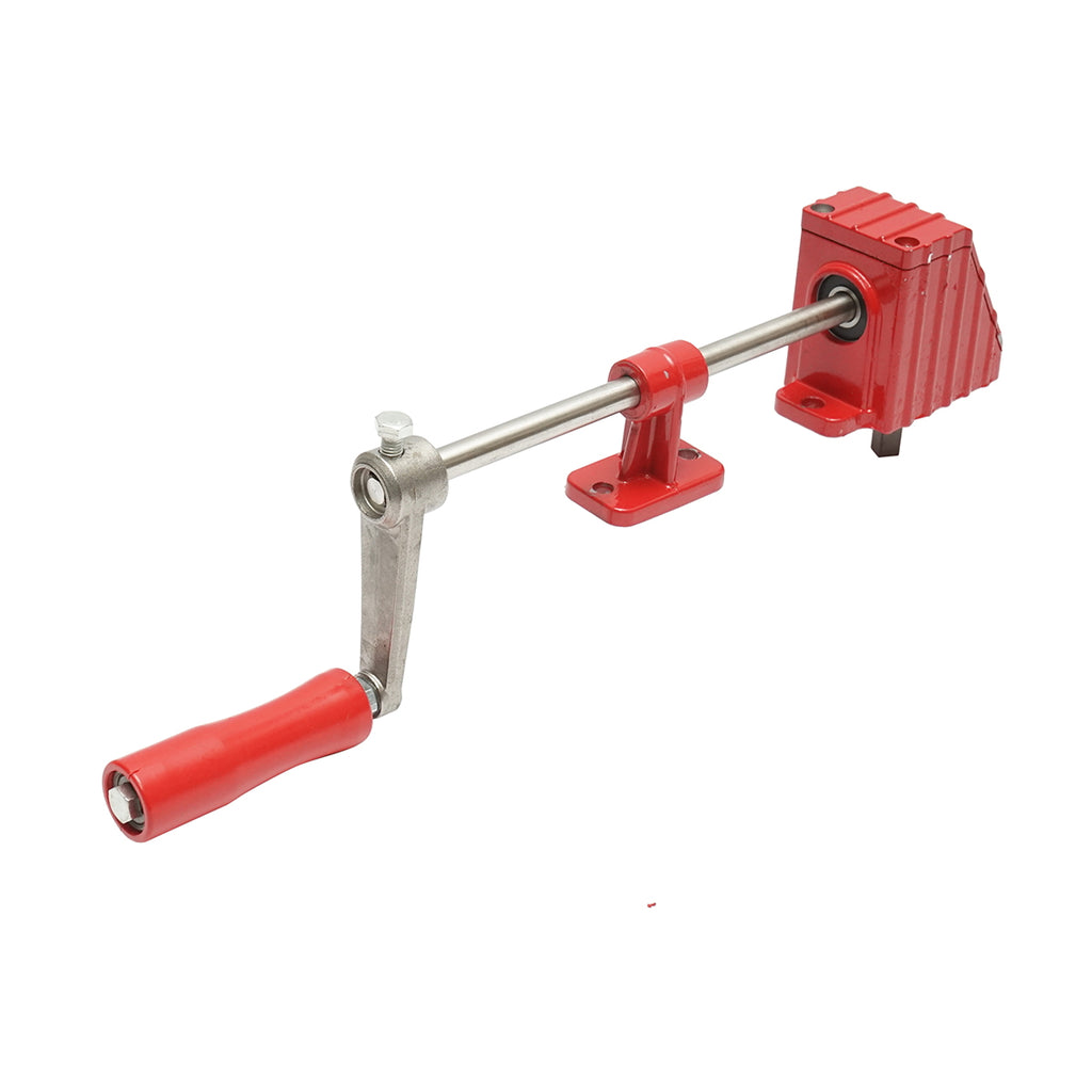 KÉZI HAJTÁSÚ HAJTÓMŰ MÉZPERGETŐHÖZ mechanikus hajtómű mézpergetőhöz, amely lehetővé teszi a dob forgatását kézi erővel. Az egység főként kis és közepes méretű méhészeti eszközökhöz használható, ahol nincs szükség elektromos meghajtásra. A hajtás áttétele kézi kar segítségével történik, biztosítva a méz kíméletes kinyerését.