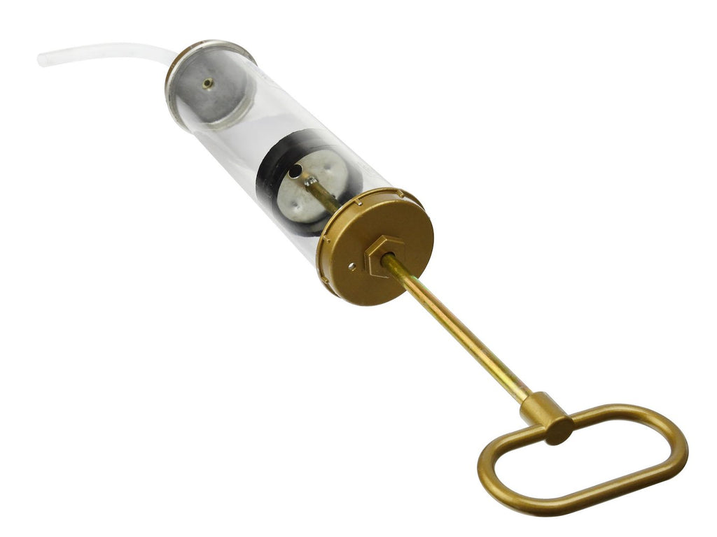 A félig átlátszó ház lehetővé teszi a folyadék vizuális ellenőrzését használat közben, a T-alakú dugattyú pedig manuális működtetést biztosít.