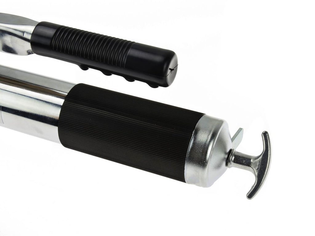 A pumpa 1/8" BSPT menetes csatlakozóval és gyors nyomásleeresztő légszeleppel van felszerelve. A fogófelület csúszásmentes kialakítású, a kar markolata puha gumiborítást kapott. A tartály kapacitása 600 ml, az adagolás 0,8–1,2 g/löket. A termék ívelt fém fúvókával, rugalmas tömlővel és hidraulikus csatlakozóval kerül szállításra.