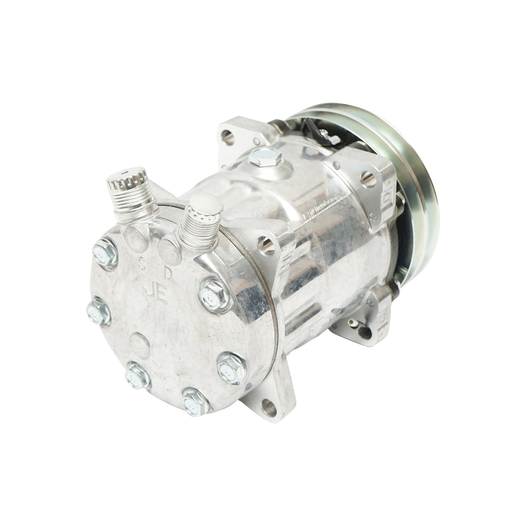 A KLÍMAKOMPRESSZOR A/C NEW HOLLAND, JCB GÉPEKHEZ, OEM KÓD: 84011595, 477/42400 légkondicionáló rendszerek hűtőközeg-kompresszora. A készülék 12 V tápfeszültséggel működik, szíjtárcsájának átmérője 132 mm, és két ékszíjhoronnyal rendelkezik. Kompatibilis több New Holland és JCB géptípussal.